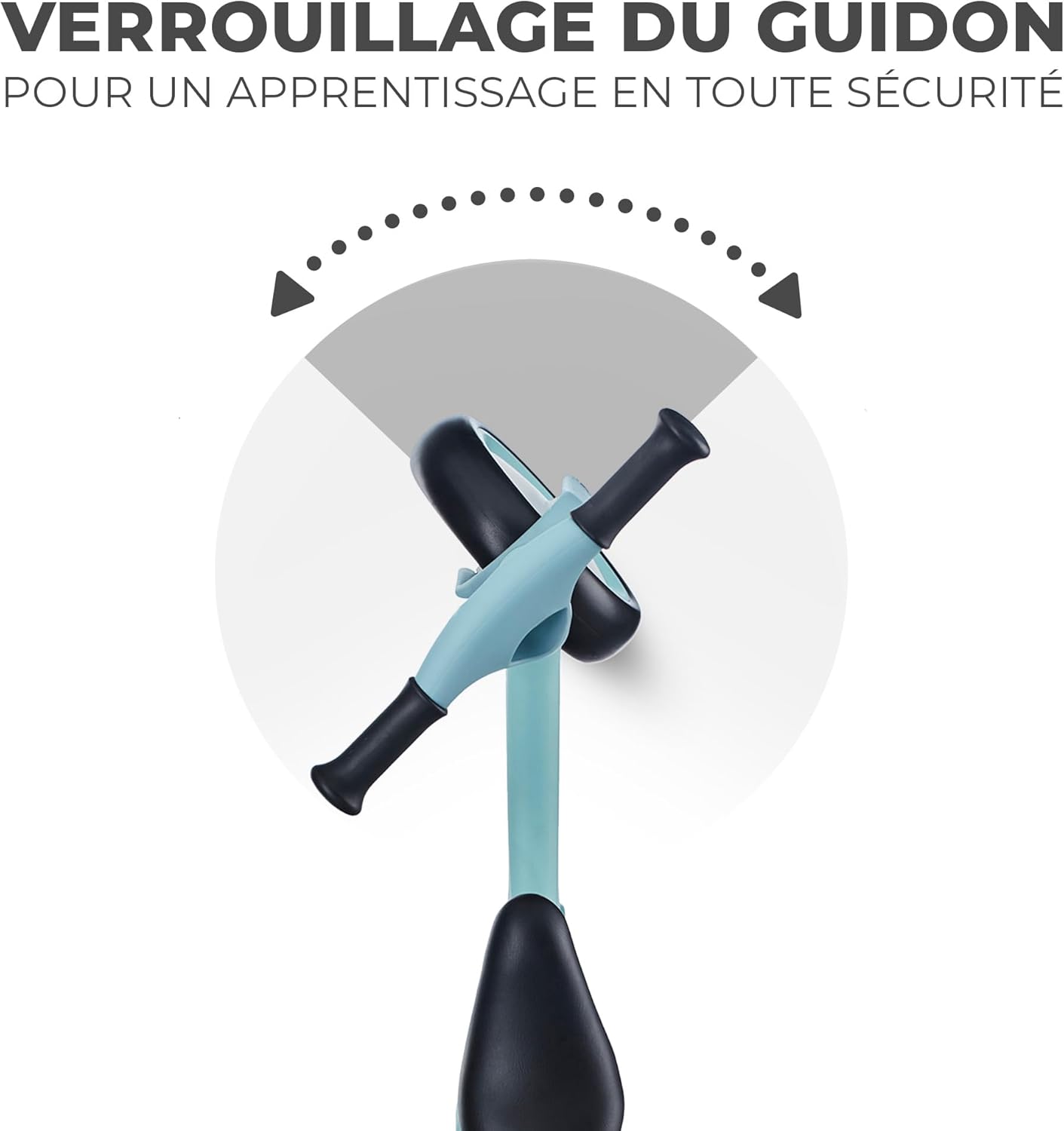 Pour assurer une protection maximale, cette draisienne est équipée d’un système de verrouillage du guidon. Cette fonctionnalité ingénieuse prévient les virages brusques et les chutes accidentelles, rendant l’apprentissage de l’équilibre encore plus sûr. Une tranquillité d’esprit assurée pour les parents tout en permettant aux enfants de développer leurs compétences motrices en toute sérénité.