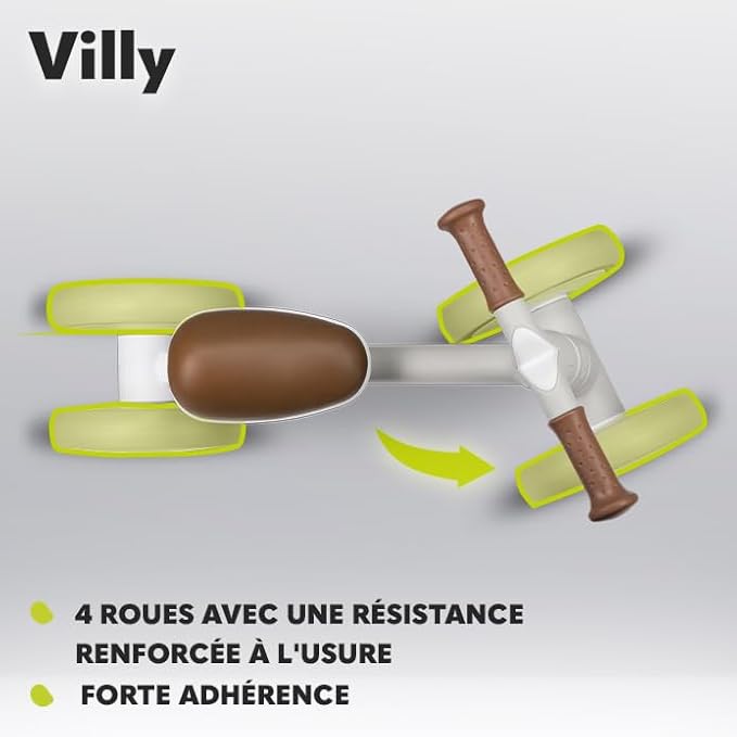 Design et construction La draisienne Lionelo Villy est magnifiquement conçue avec une attention particulière à la sécurité et au confort des tout-petits. Sa construction légère permet aux enfants de manipuler facilement le vélo, ce qui est crucial pour les plus jeunes qui découvrent encore leur équilibre et leur coordination. Stabilité et sécurité Avec ses quatre roues, la Lionelo Villy offre une stabilité exceptionnelle, réduisant considérablement le risque de chutes. Cette stabilité est particulièrement rassurante pour les parents et aide les enfants à gagner en confiance dès leurs premières expériences de conduite. Les roues sont robustes et durables, assurant une utilisation sécurisée sur diverses surfaces. Confort et ergonomie Le siège de la draisienne est bien rembourré, offrant un confort optimal même lors de longues balades. La hauteur du siège est facilement ajustable, ce qui permet d'adapter le vélo à la croissance de l'enfant et d'assurer une posture confortable. Les poignées sont ergonomiques et douces au toucher, facilitant la prise en main pour les petites mains. Facilité d'utilisation La Lionelo Villy est incroyablement facile à assembler, ce qui est un grand plus pour les parents. Son poids léger permet également un transport aisé, que ce soit pour les sorties au parc ou pour le rangement à la maison. De plus, la draisienne ne nécessite pas de pédales, permettant aux enfants de se concentrer sur le développement de leur équilibre et de leur coordination motrice. Esthétique et attrait Le design coloré et attrayant de la Lionelo Villy plaît beaucoup aux enfants. Les couleurs vives et les motifs amusants rendent le vélo encore plus attrayant, incitant les petits à l'utiliser régulièrement. Rapport qualité-prix En termes de rapport qualité-prix, la draisienne Lionelo Villy offre une excellente valeur. Elle combine sécurité, confort, et durabilité à un prix raisonnable. C'est un investissement judicieux pour les parents qui souhaitent offrir à leurs enfants un moyen sûr et agréable d'apprendre à faire du vélo. Conclusion La draisienne Lionelo Villy est un choix exceptionnel pour les enfants de 1 à 3 ans. Sa conception sécurisée, son confort supérieur et son attrait visuel en font un produit que les parents et les enfants adorent. Je recommande fortement ce vélo à quatre roues pour tous les jeunes enfants qui commencent à explorer le monde du cyclisme.