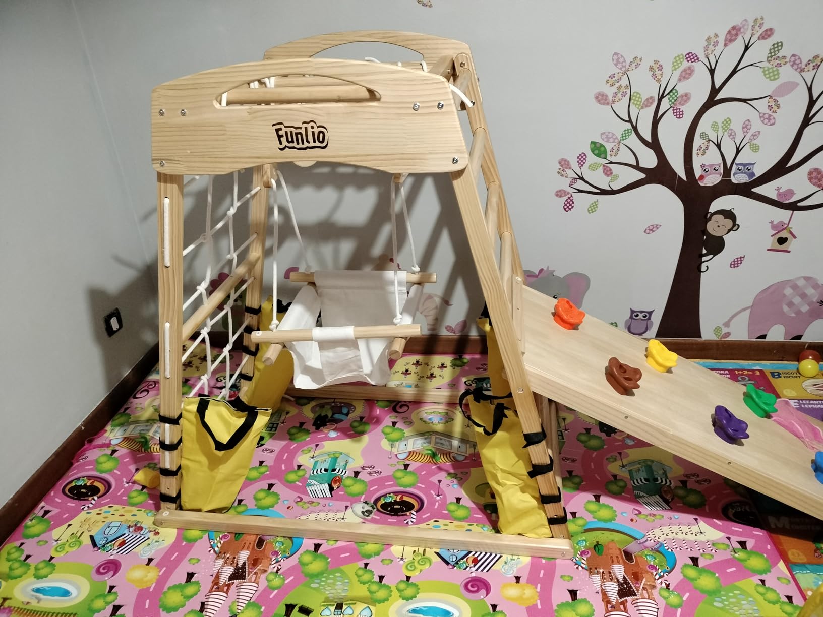 Découvrez l’Ensemble de jeux Montessori FUNLIO, un dispositif ludique et pédagogique qui éveille la curiosité et développe la motricité des enfants. Cet ensemble est composé de trois pièces : un toboggan, un rocher d’escalade, une arche et un triangle d’escalade. Ces éléments peuvent être combinés librement pour créer différents modes de jeu, permettant à votre enfant de vivre une aventure chaleureuse tout en développant son sens du partage et de la coopération.
