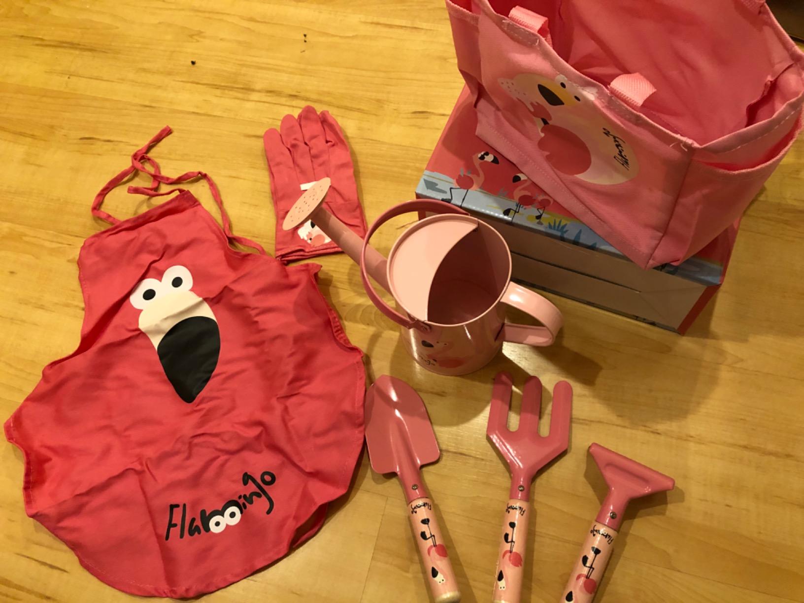 Gifting my child the pink flamingo-themed kids' gardening tools set transformed our backyard activities. The set includes a variety of essentials: three hand tools, a durable garden bag, cotton gloves, an apron, and a robust metal watering can with an eco-friendly anti-rust finish. It's ideal for children over five and perfect for a child's first foray into gardening. The tools feature lightweight metal construction with wooden handles, making them easy for small hands to hold and use. The bright pink color and fun flamingo designs captivate children and add an element of play to gardening tasks. The garden bag, made of sturdy oxford cloth, along with the cotton gloves and apron, protect from dirt while encouraging organizational habits from a young age. Children enjoy using these tools for various activities beyond gardening, like playing in the sand at the beach, thanks to the portability and versatility of the set. The inclusion of protective gear like gloves and an apron ensures they can play and learn without the mess. This gardening set not only introduces kids to the joys of growing plants but also helps them develop a love for nature and animals, inspired by the engaging flamingo theme. It's a wonderful way to encourage outdoor play and instill a sense of responsibility through fun and interactive means.
