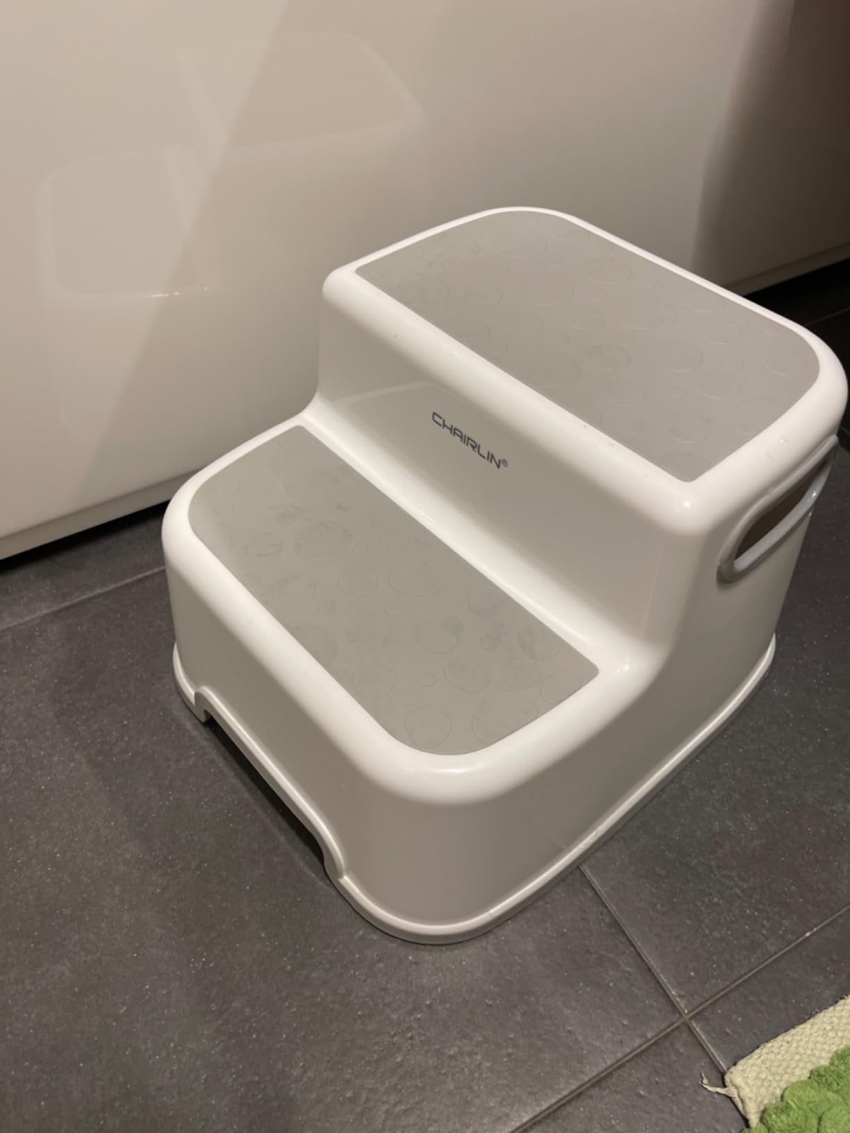Utilisé pour que ma fille puisse monter seule sur les toilettes ou accéder au lavabo. Très stable, assez haut par rapport à d'autres marche pied, ce qui est un vrai plus pour les tout petits. Testé aussi pour accéder au haut des placard, il supporte parfaitement le poids d'un adulte. Les 2 marches sont recouvertes d'un revetement antidérapant, ça prend un peu la poussière mais au moins on ne glisse pas dessus.