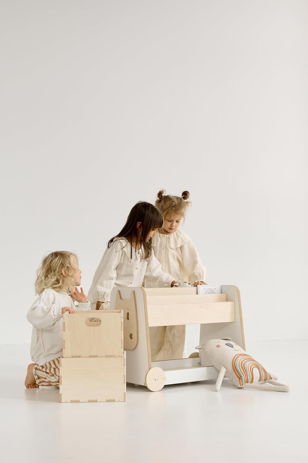 Fabriquée à partir de matériaux respectueux de l’environnement, cette bibliothèque s’inscrit parfaitement dans une démarche durable. Ses teintes naturelles et sa finition soignée s’harmonisent avec n’importe quel style de décoration, qu’il s’agisse d’une chambre d’enfant ou d’un espace de jeu commun. La simplicité de ses lignes en fait un objet intemporel qui grandit avec votre enfant.