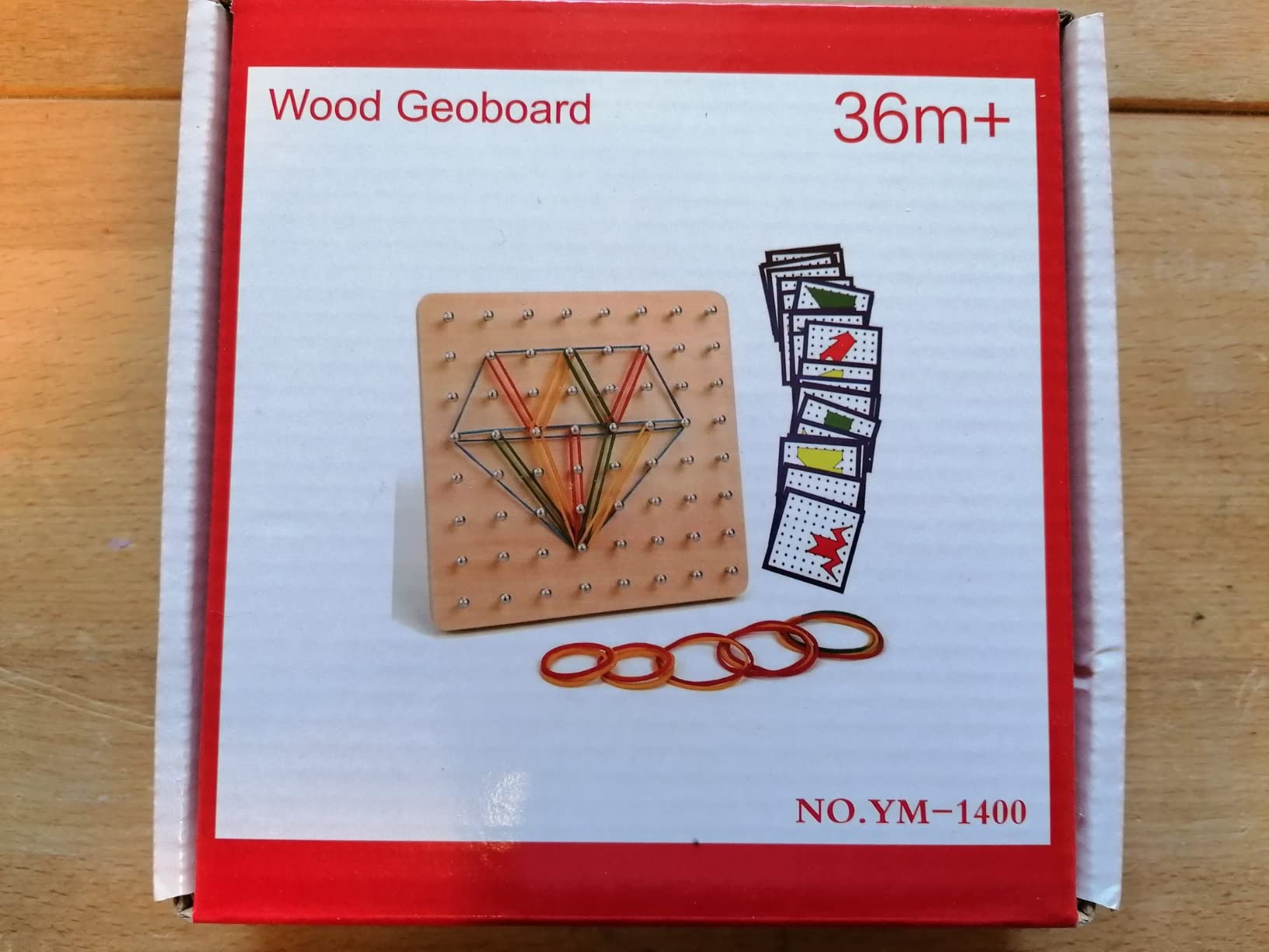 Dieses Geoboard aus massivem Holz für Kinder ab 3 Jahren wird inklusive vieler bunter Gummibänder in unterschiedlichen Größen und 18 Musterkarten sowie 5 Karten, die man selbst beschriften kann, geliefert. Das Bord ist gleichmäßig mit abgerundeten Nägeln versehen, die in 8 x 8 Reihen angeordnet sind. Mit den Gummibändern gilt es nun die auf den Kärtchen abgebildeten Formen nachzubilden. Auf den freien Karten kann man selbst kreativ werden. Natürlich kann man auch weitere Kärtchen herstellen. Gummis sind reichlich vorhanden, ansonsten kann man auch welche nachkaufen, da es sich um handelsübliche Bänder für den Haushalt handelt. Die Kinder üben auf diese Art spielerisch das visuelle Denken, die Motorik, die Konzentration, Farben und Kreativität. Das Geoboard ist abgerundet und splitterfrei, hat eine stabile Stärke und die Nagelköpfe sind ebenfalls abgerundet. Die Musterkarten könnten meiner Meinung dicker sein, da einige der kleinen mit 36 Monaten noch etwas grobmotorisch mit Dingen umgehen. Ansonsten ist es ein schönes Spiel und eignet sich auch gut als Geschenk.