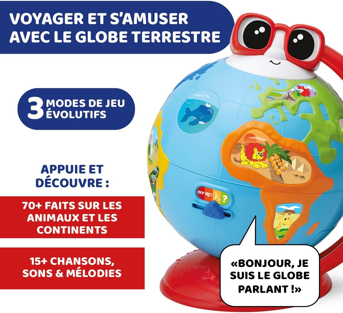 Faites voyager vos enfants autour du monde avec ce globe éducatif interactif, alliant apprentissage ludique et découverte des continents, animaux, monuments et plus encore.