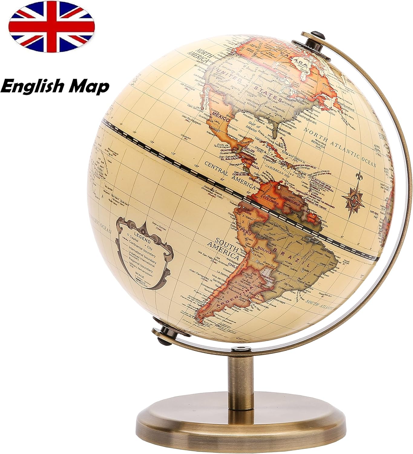 Apportez une touche d’élégance et de savoir avec ce globe terrestre antique de 14 cm, aux détails précis et son support en métal bronze, idéal pour décorer ou apprendre tout en explorant le monde.