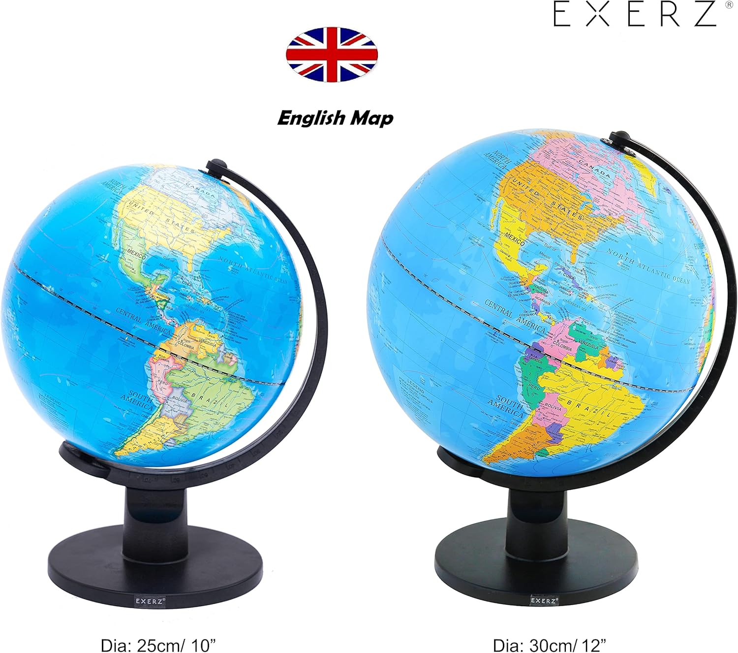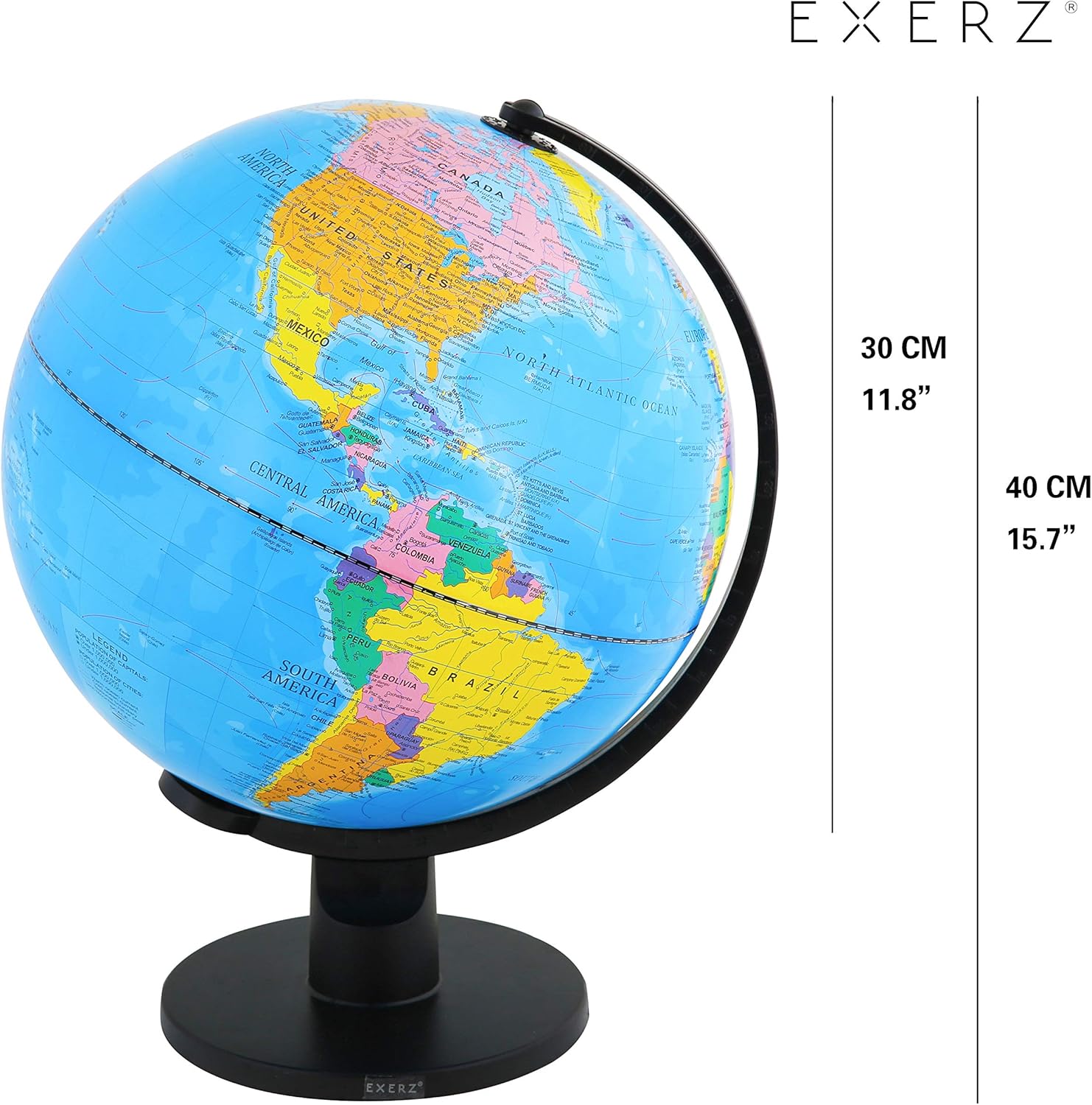 Avec un diamètre de 30 cm, ce globe offre un équilibre parfait entre taille compacte et lisibilité optimale. Il s’intègre facilement dans une chambre d’enfant, une salle de classe ou même un bureau, tout en fournissant suffisamment d’espace pour afficher des détails géographiques essentiels.