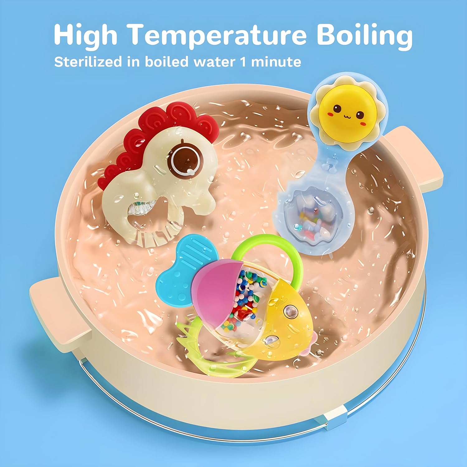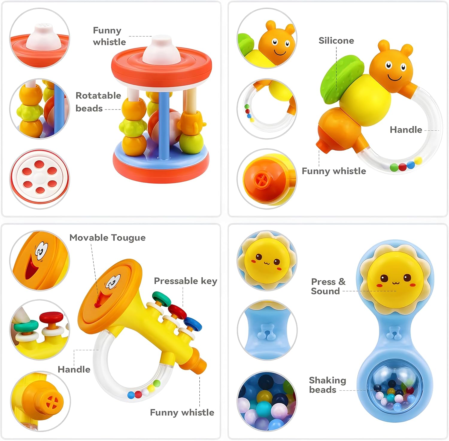 Stimulez l’éveil de votre bébé avec ce hochet Montessori multifonction, un jouet éducatif, coloré et sécurisé, parfait pour apaiser les poussées dentaires tout en développant coordination et curiosité.