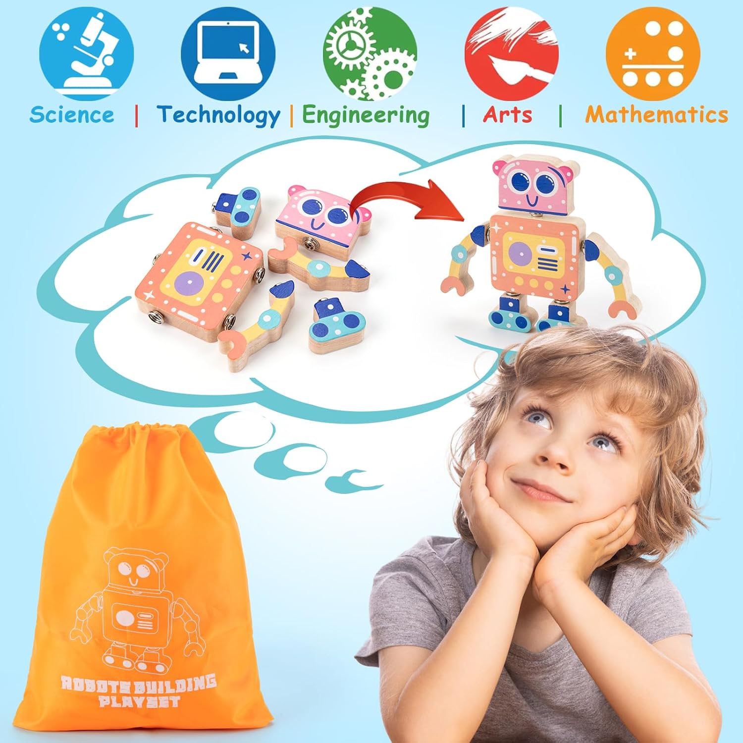 Avec ce jeu de construction en bois Montessori, vos enfants auront entre leurs mains bien plus qu’un simple jouet. Composé de 28 blocs en bois soigneusement conçus, il leur offre la possibilité de créer plus de 6 robots différents grâce à des pièces colorées et emboîtables. Têtes, bras, jambes et corps peuvent être combinés à l’infini, laissant place à une créativité sans limite. Chaque enfant pourra inventer des formes uniques et développer son propre univers ludique.