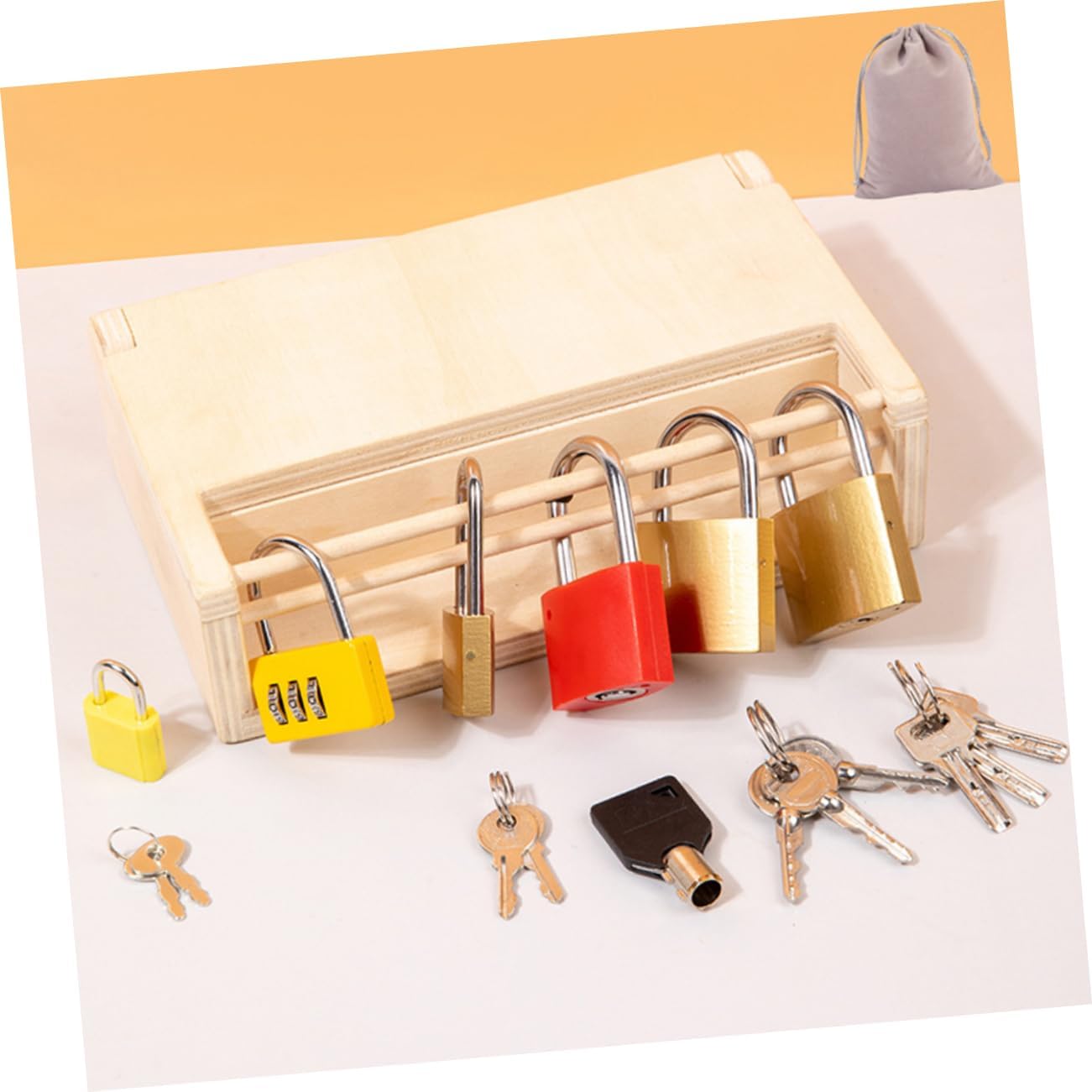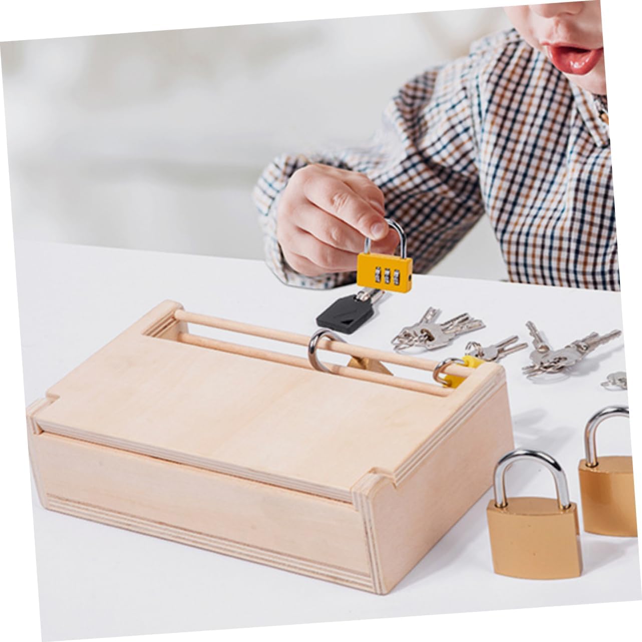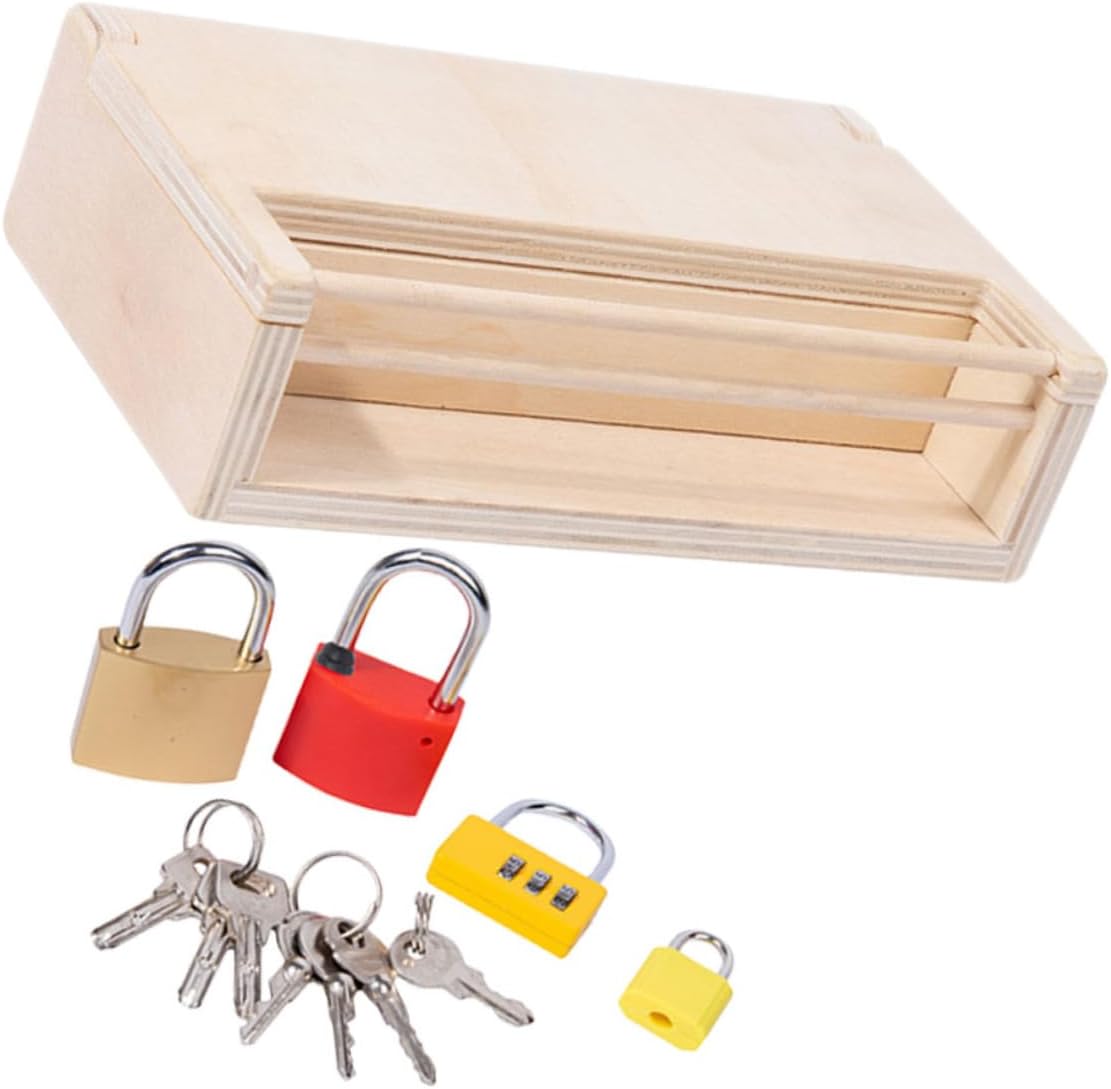Initiez vos enfants au développement de la motricité fine et à la résolution de problèmes avec ce jeu éducatif Montessori en bois, conçu avec des clés et serrures pour un apprentissage ludique et stimulant.