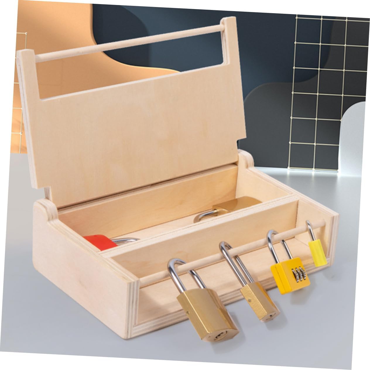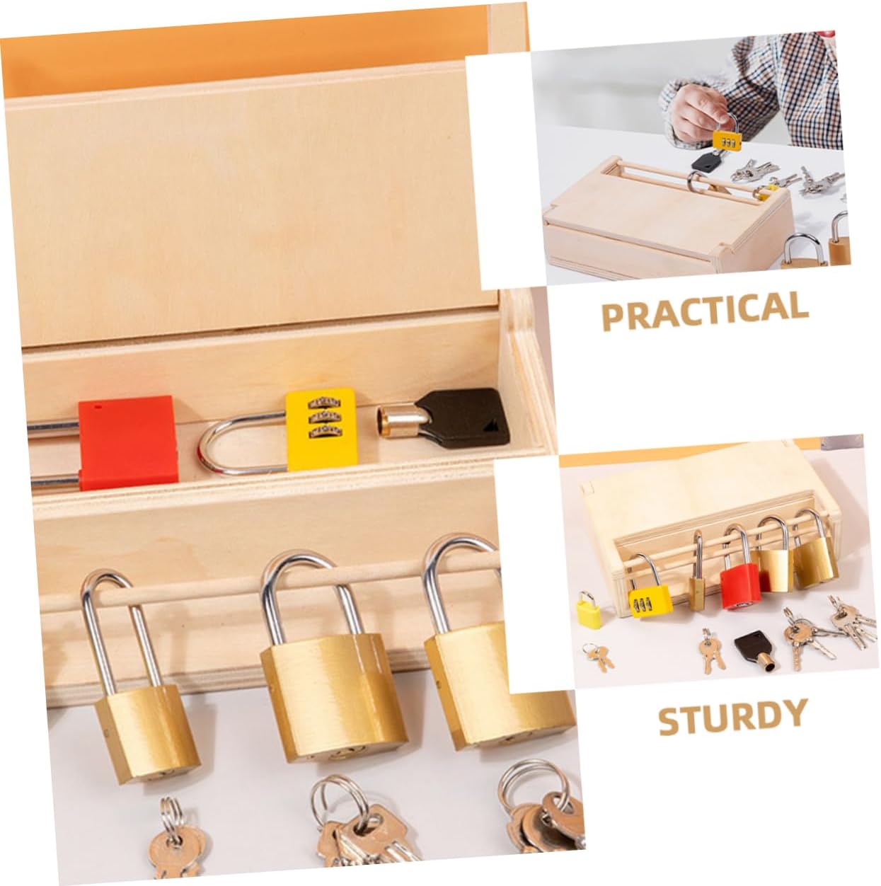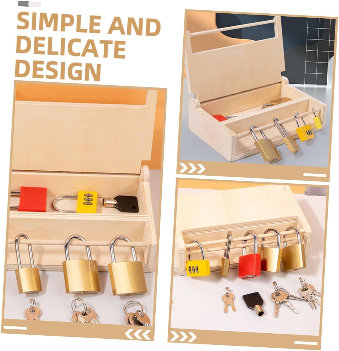 Initiez vos enfants au développement de la motricité fine et à la résolution de problèmes avec ce jeu éducatif Montessori en bois, conçu avec des clés et serrures pour un apprentissage ludique et stimulant.