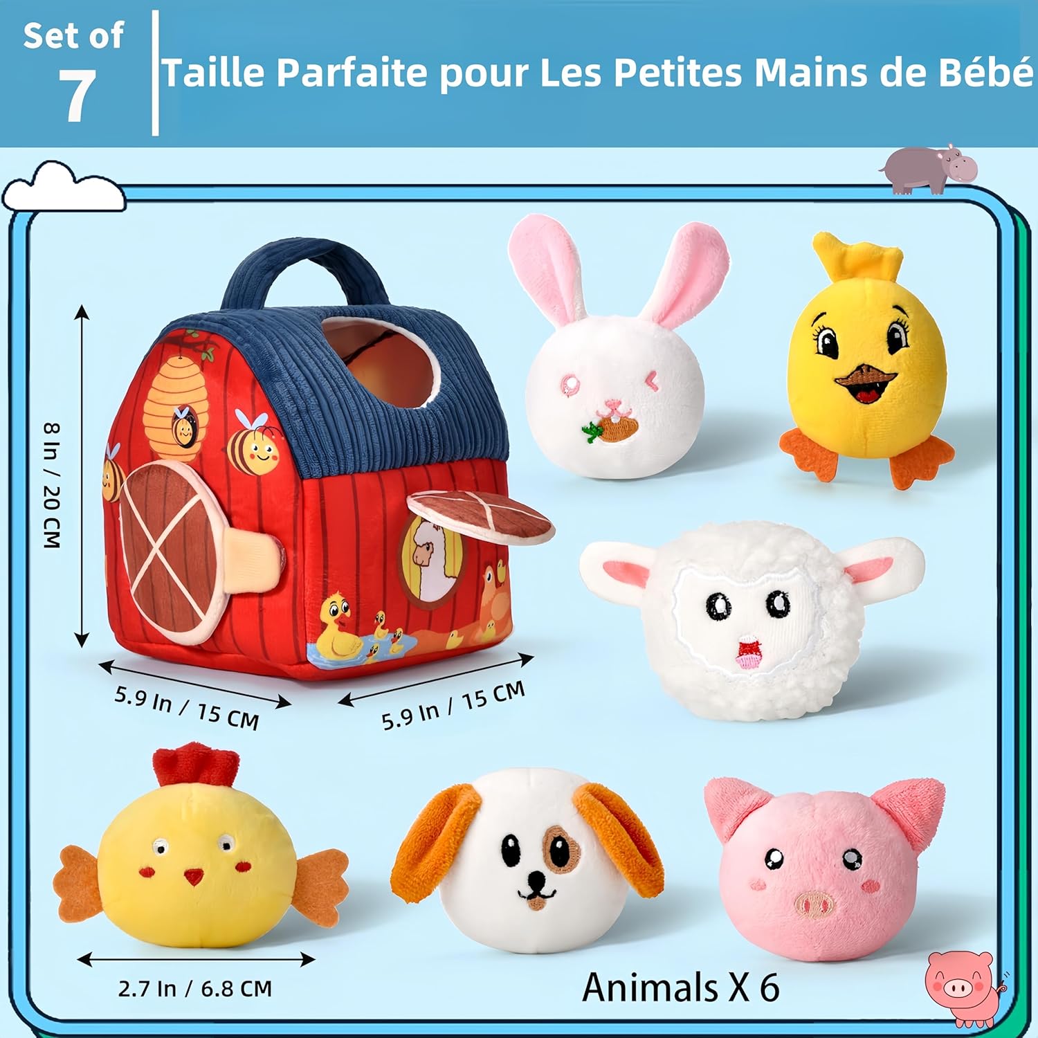 Offrez à votre bébé de 6 mois une découverte ludique et sensorielle avec cet ensemble Montessori 7-en-1 comprenant une grange interactive, des animaux de la ferme aux textures variées et des hochets pour stimuler sa motricité et ses sens en toute sécurité.