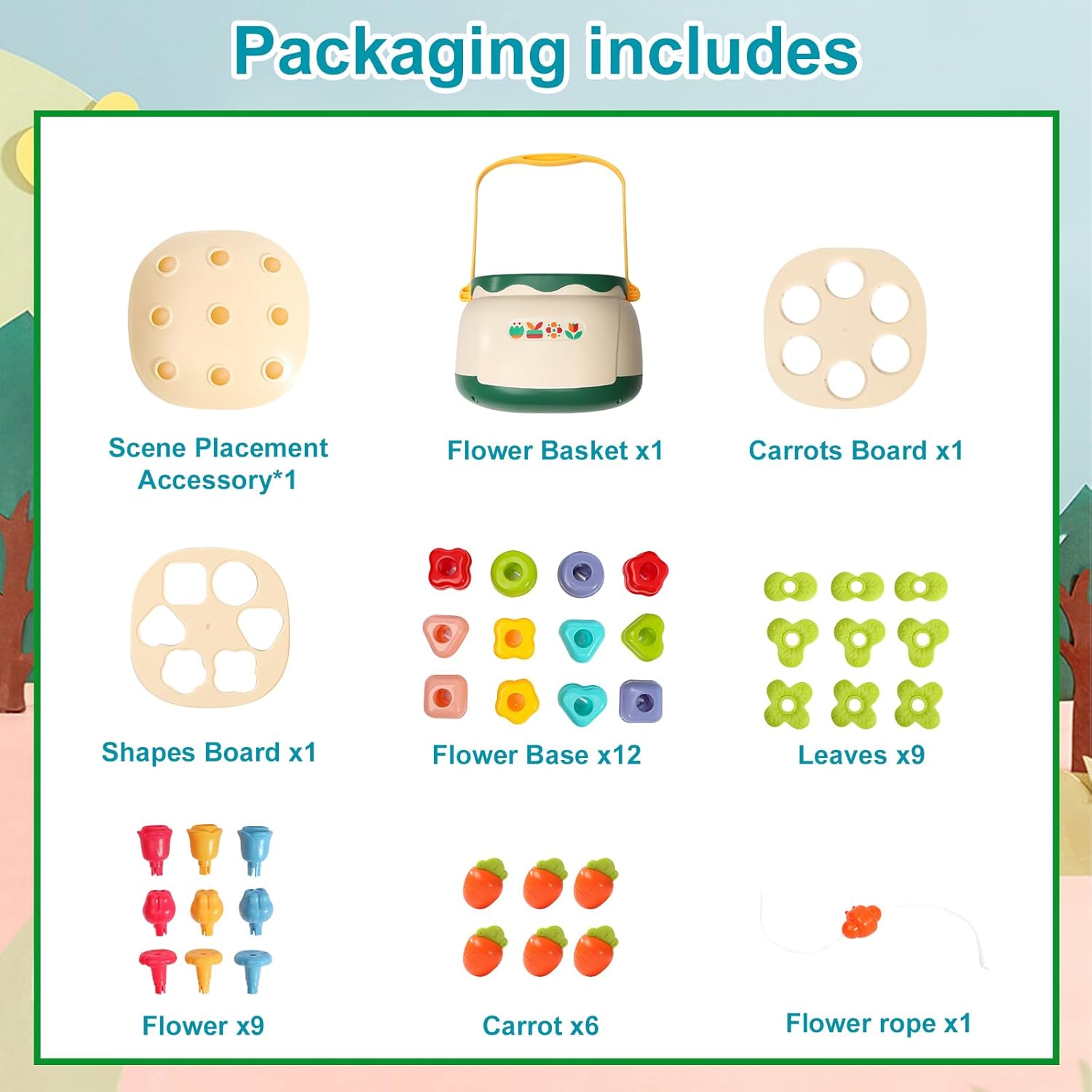Ce jouet est conçu pour répondre aux besoins de développement des jeunes enfants. En manipulant les différentes pièces du jeu, votre enfant améliore sa motricité fine, sa coordination œil-main et sa concentration. De plus, l’assemblage des fleurs stimule la réflexion logique et la résolution de problèmes, tout en éveillant leur curiosité naturelle. Ce jouet est une excellente manière d’apprendre en jouant, tout en offrant une expérience sensorielle captivante grâce aux couleurs vives et aux textures variées.
