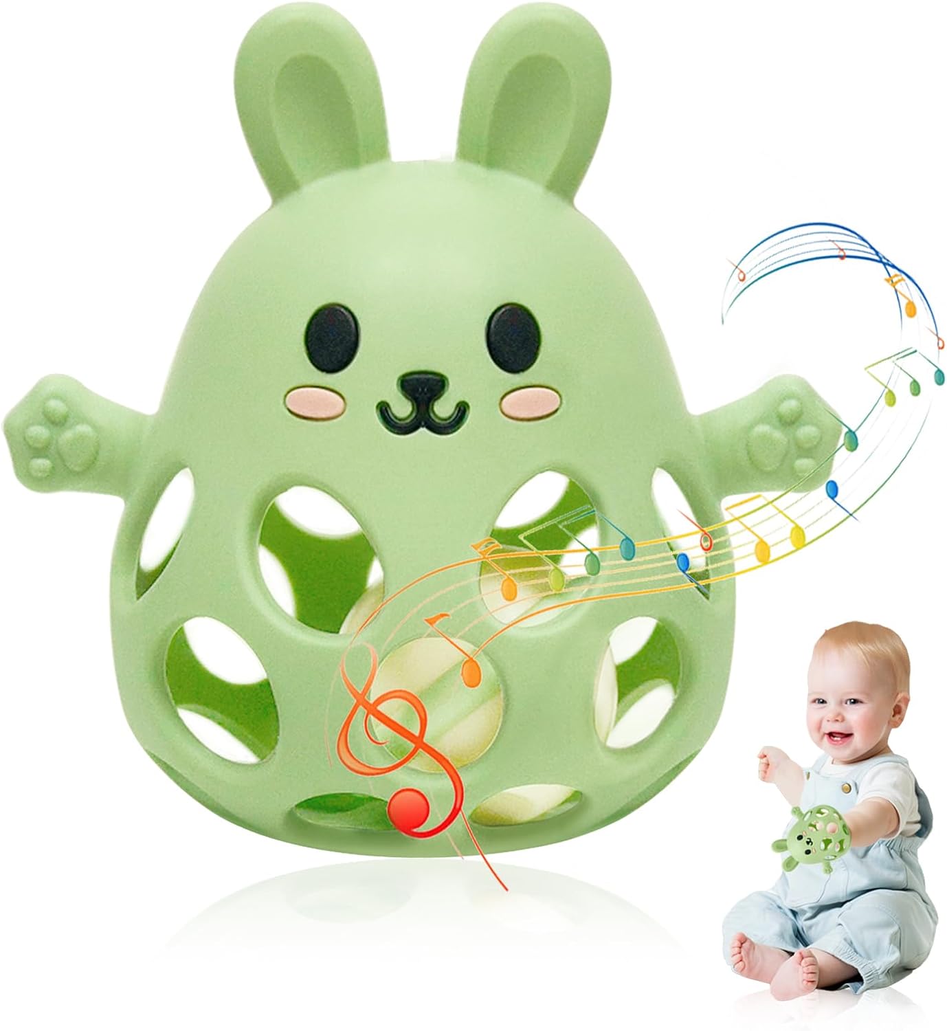 - Fonctionnalités : Jouet de dentition, balle sensorielle avec bruissement doux, hochet rotatif