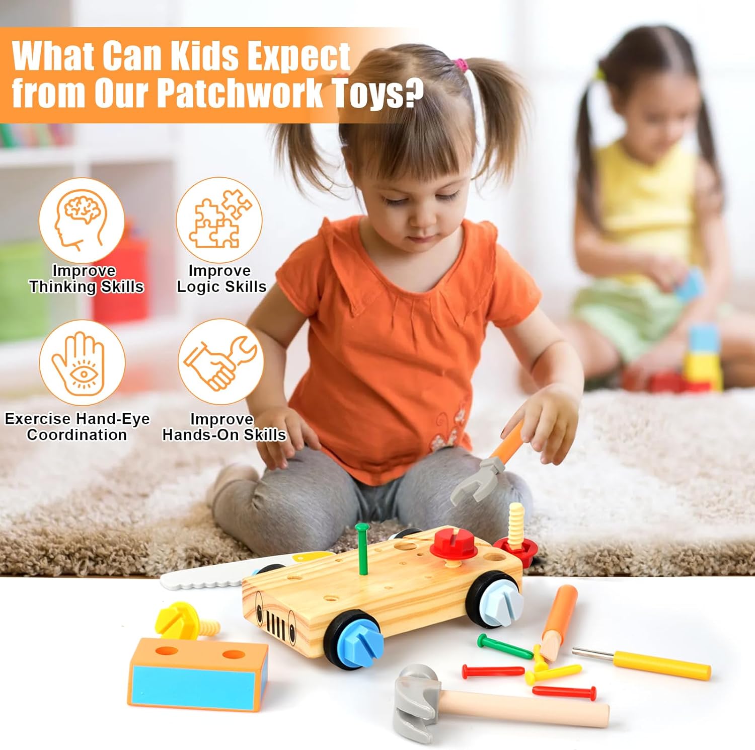 Ce jeu éducatif est adapté aux enfants à partir de 2 ans. Il permet aux plus jeunes d’apprendre à utiliser un tournevis de manière pratique, à travailler avec différents outils et à tenir correctement les clés. Ce jouet aide également à entraîner la coordination main-œil et à développer la motricité fine.