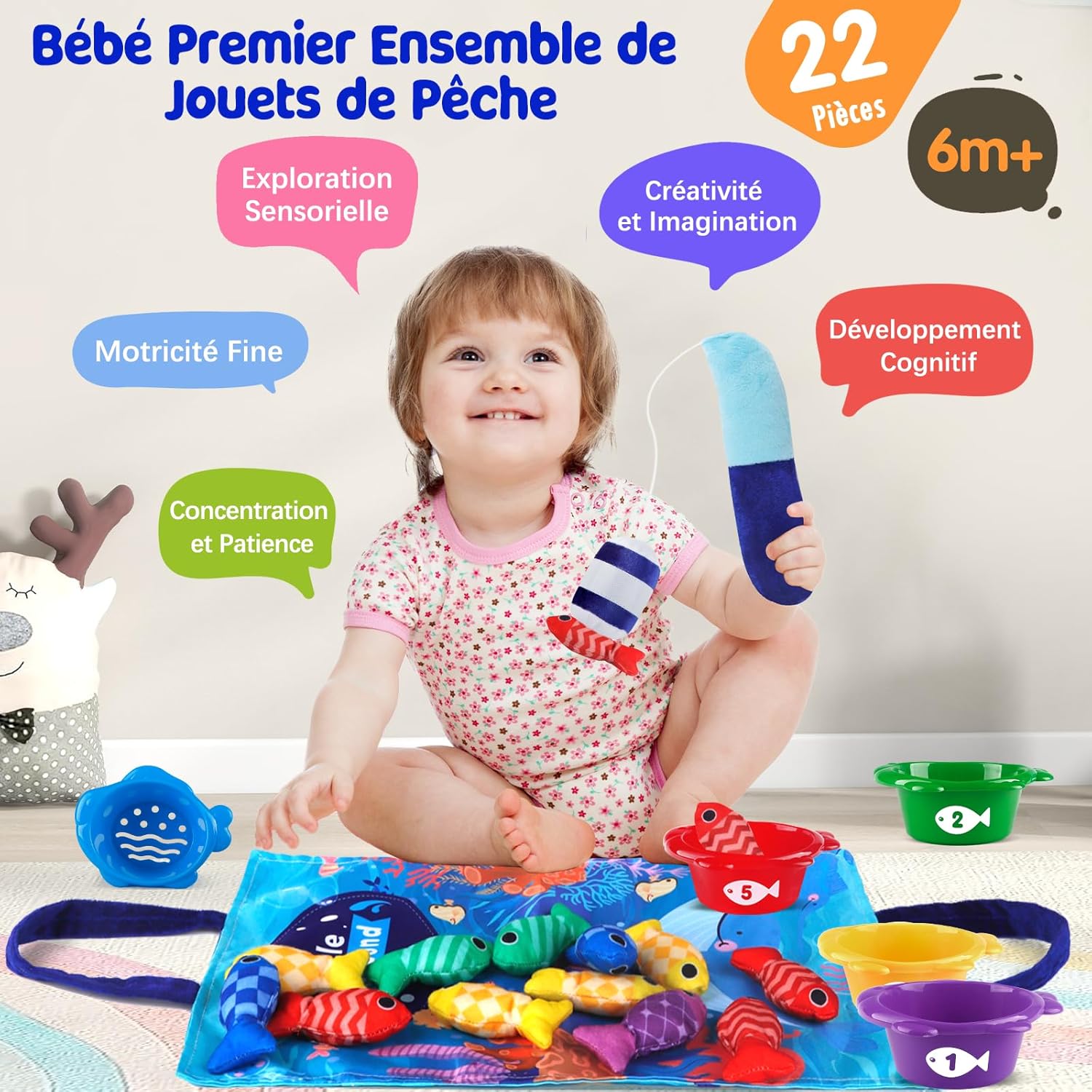 Offrez à votre enfant une expérience ludique et éducative avec ce jouet de pêche Montessori, conçu en tissu doux et sécurisé, idéal pour développer la motricité fine, la coordination et les capacités cognitives dès 6 mois.
