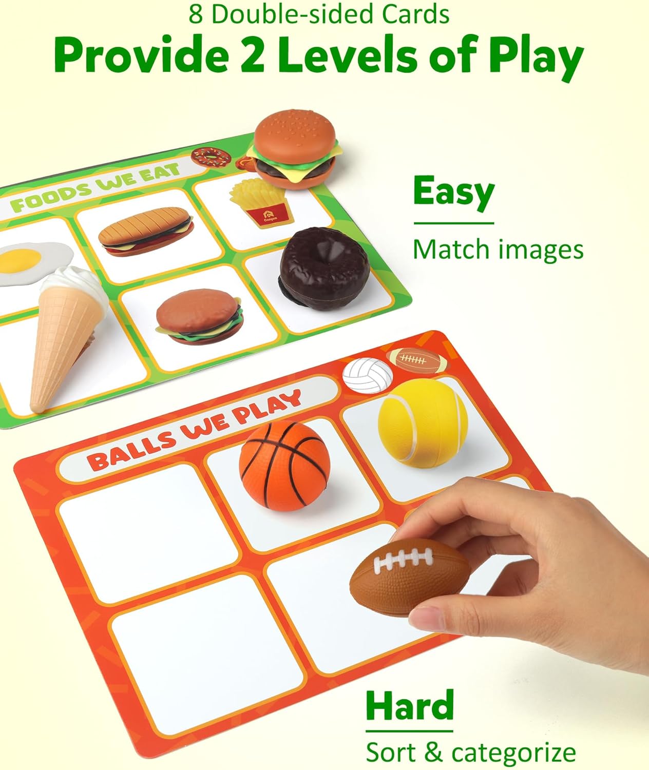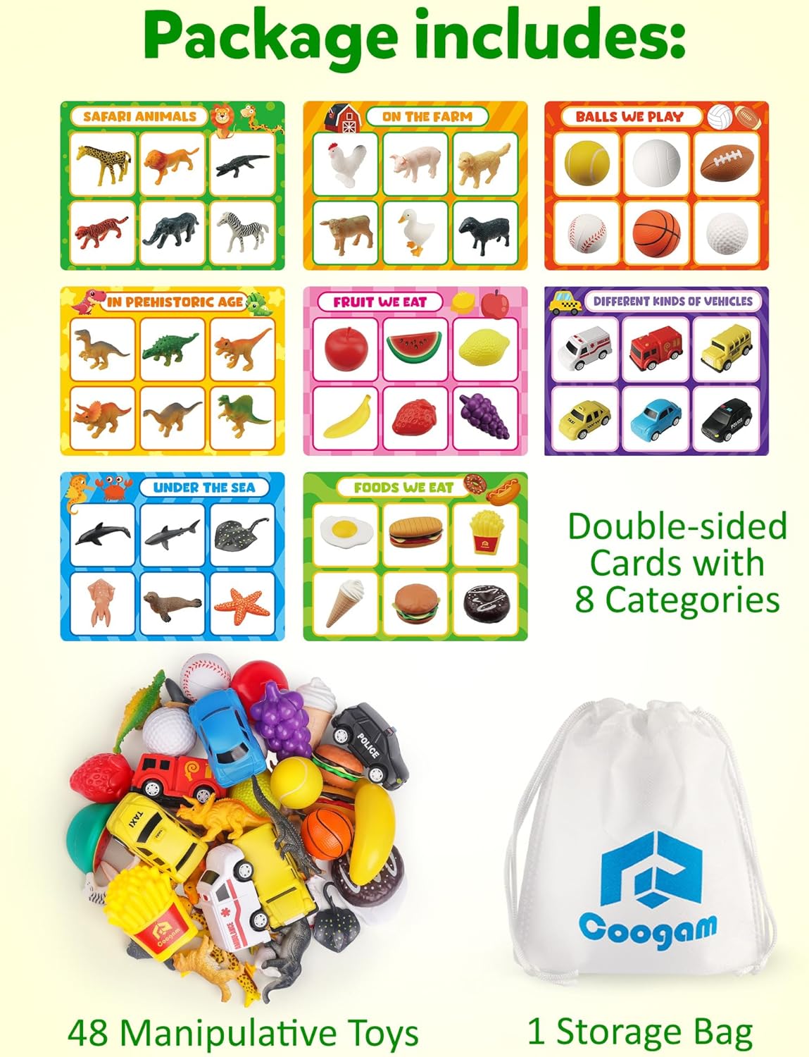 Les cartes d’activité incluses transforment chaque session de jeu en une expérience éducative enrichissante. Les enfants apprennent à trier, classer et identifier les objets selon leurs caractéristiques spécifiques, ce qui développe leur capacité cognitive et leur logique. En plus de favoriser la motricité fine, ce jeu aide également à affiner les compétences de résolution de problèmes tout en maintenant l’intérêt des enfants grâce à son approche ludique et engageante.