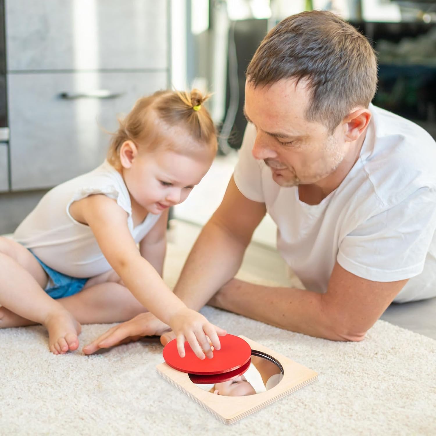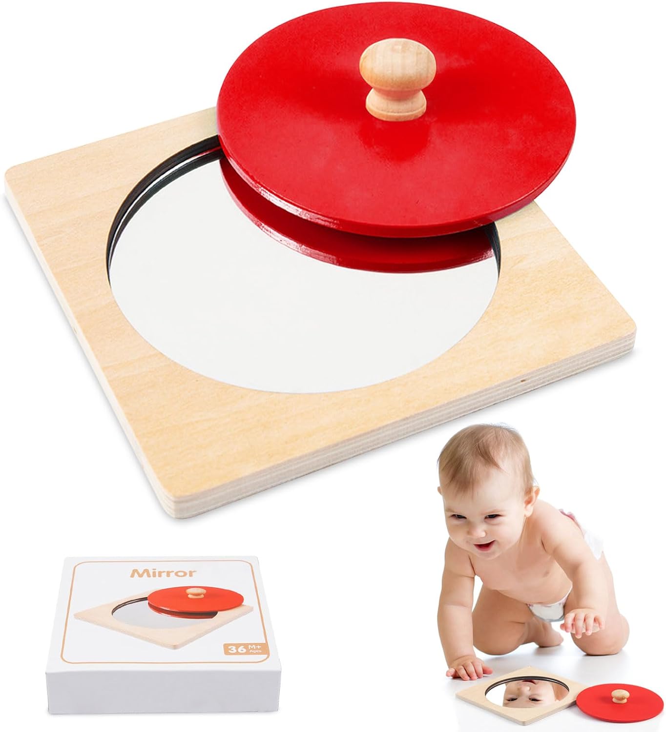 Éveillez la curiosité de votre bébé avec ce jouet Montessori en bois doté d’un miroir acrylique, idéal pour développer sa motricité, ses capacités cognitives et sa perception spatiale.