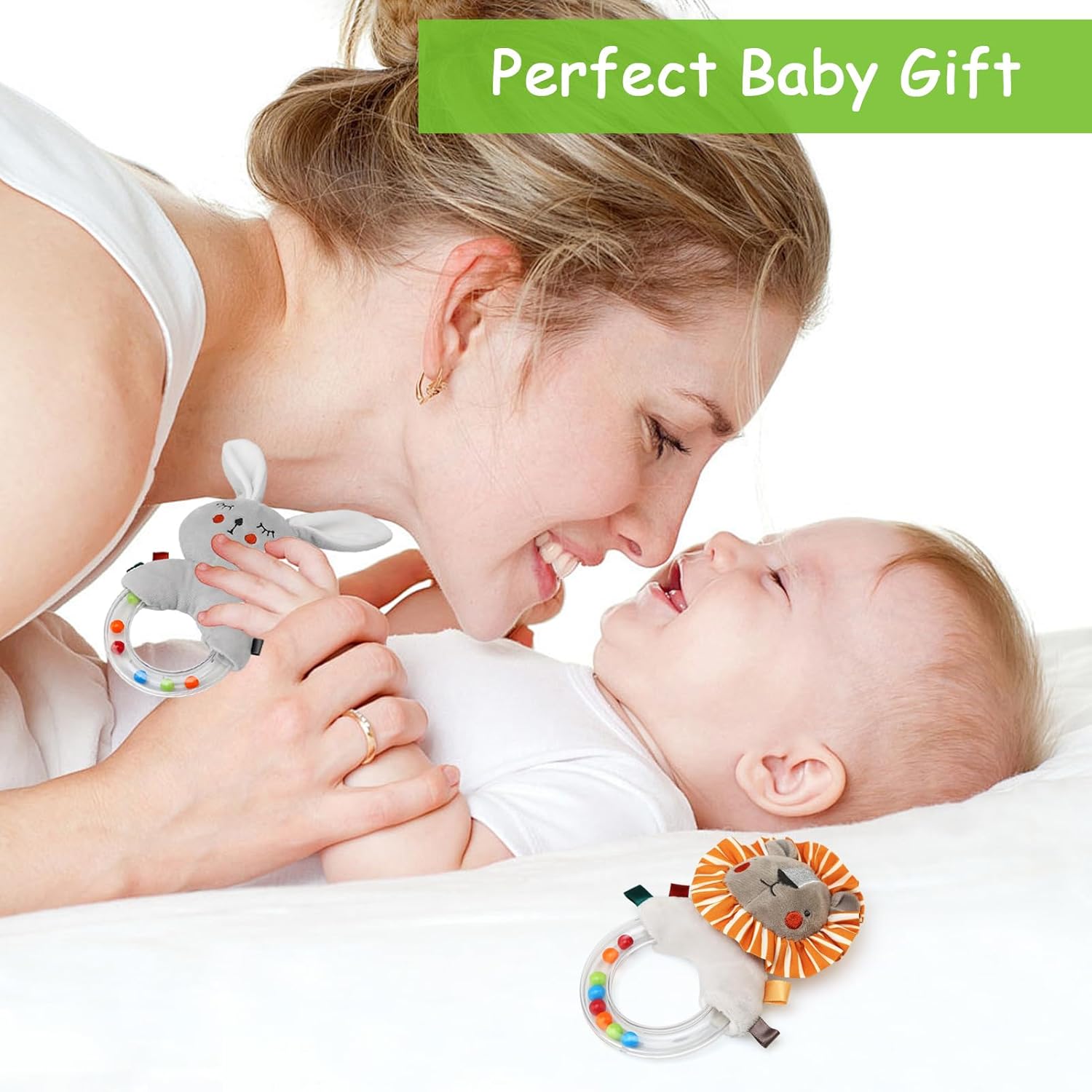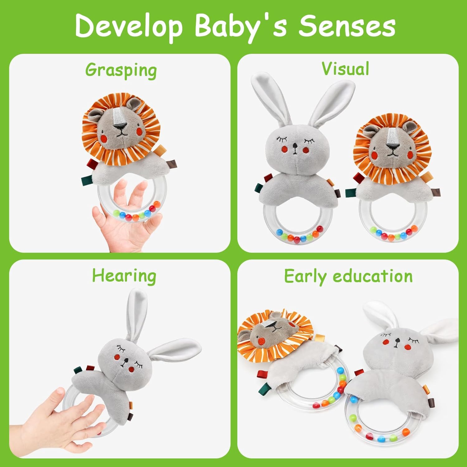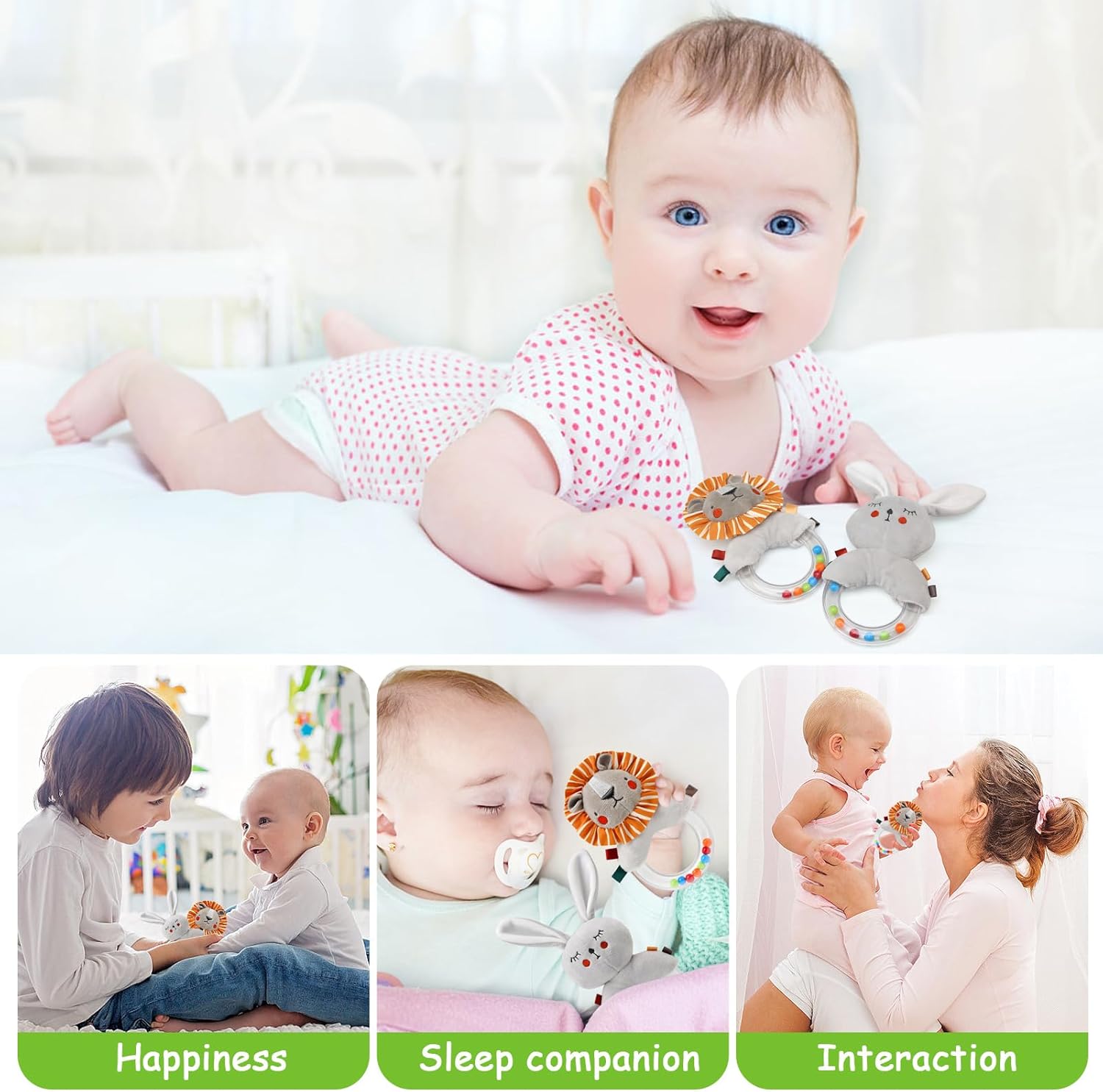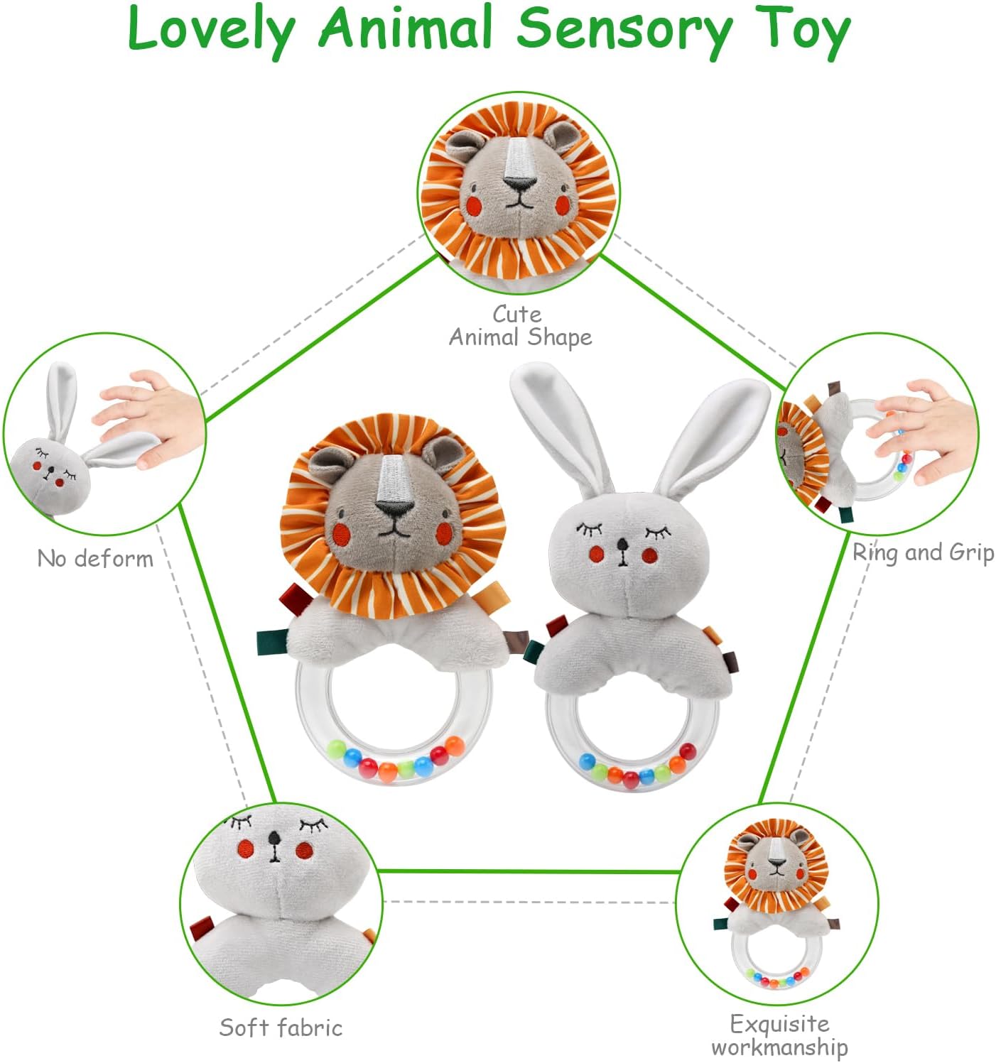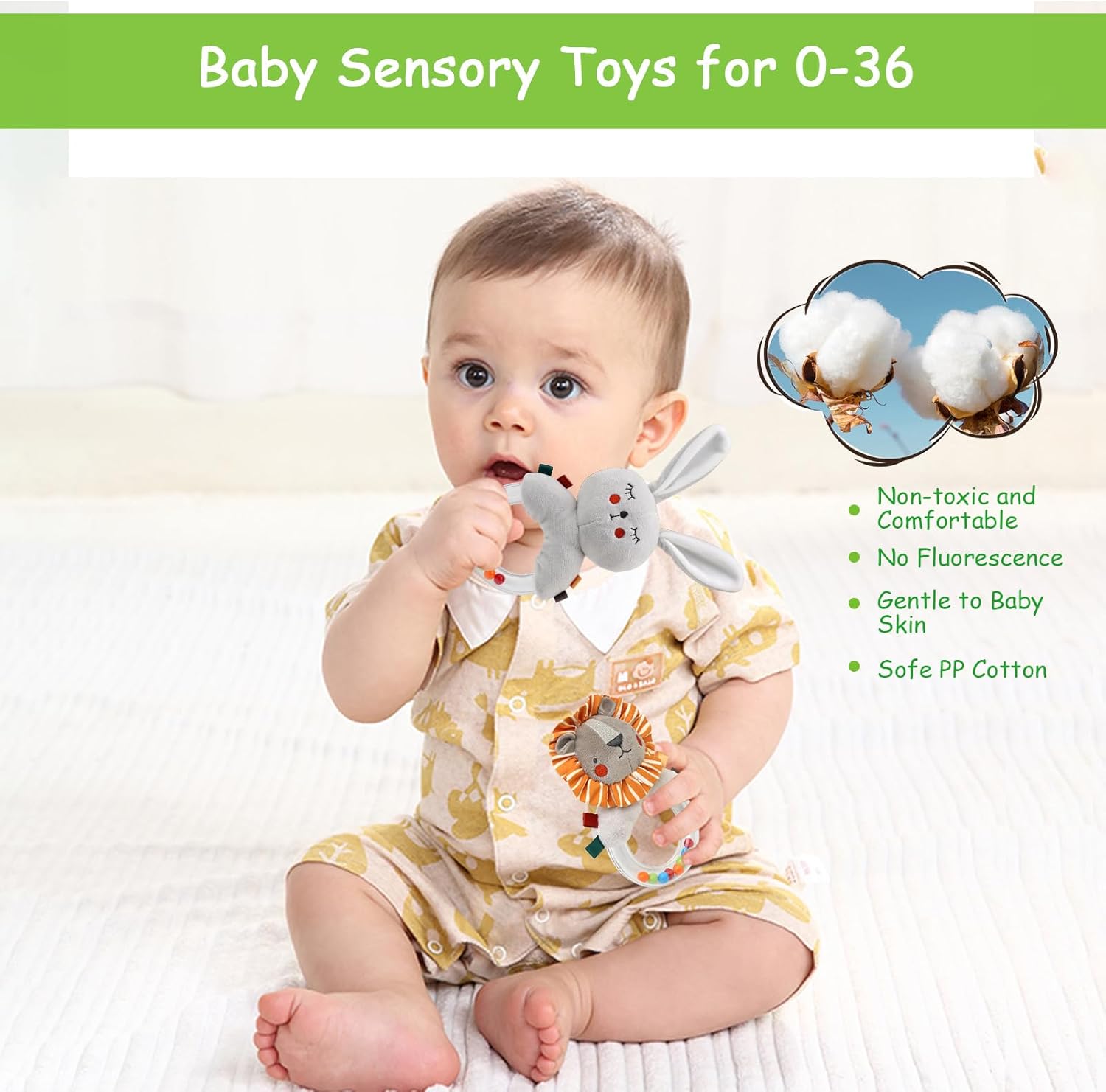 Offrez à votre bébé de 0 à 12 mois un développement sensoriel complet avec ces hochets Montessori en peluche douce, conçus pour stimuler la vue, l’ouïe et la motricité tout en s’amusant.