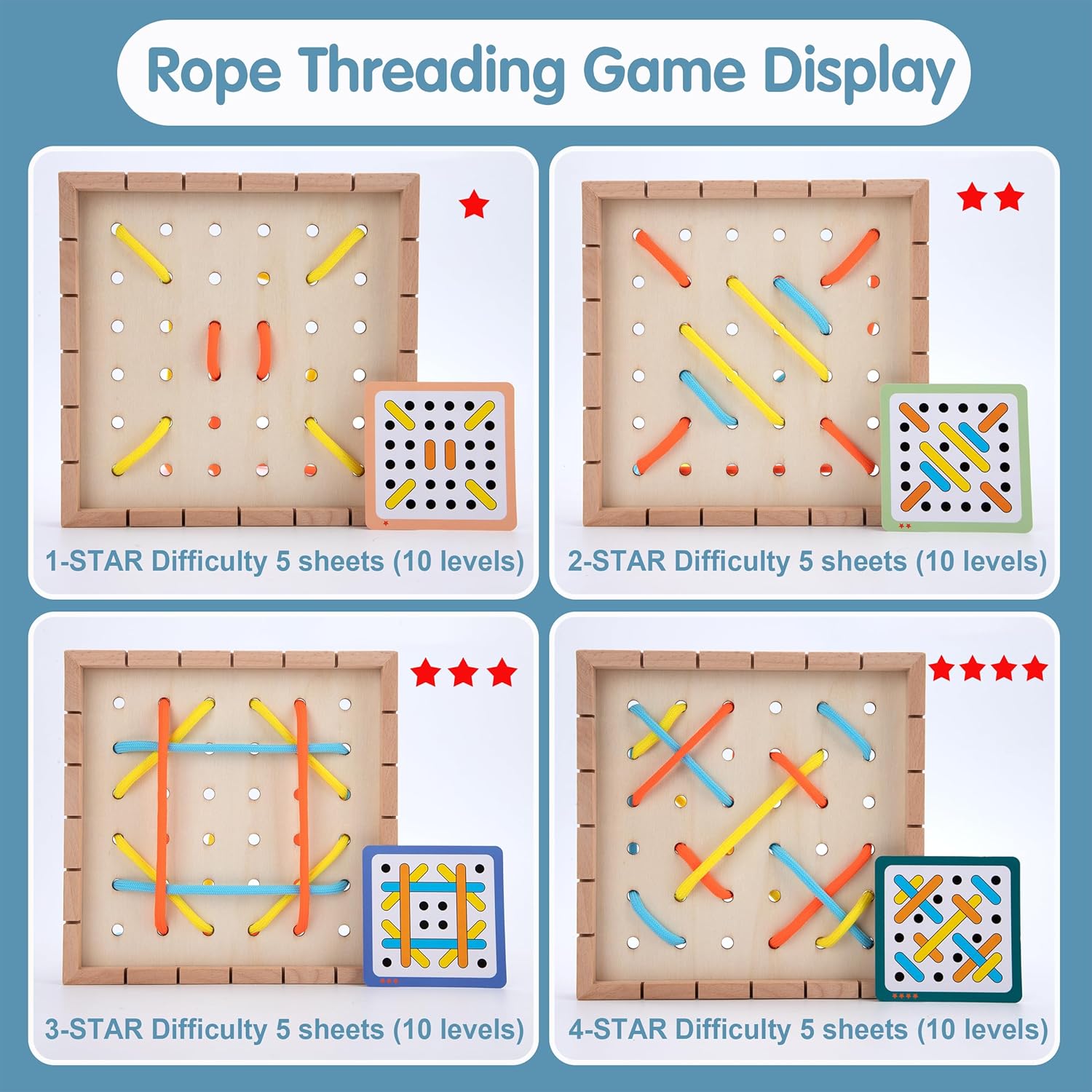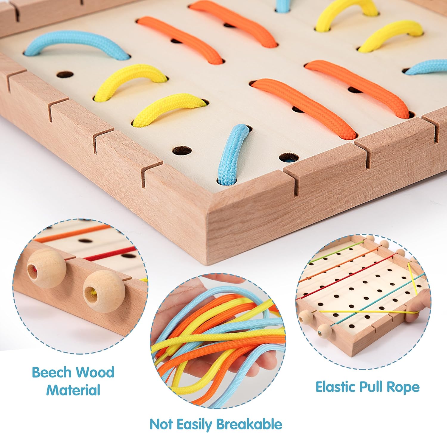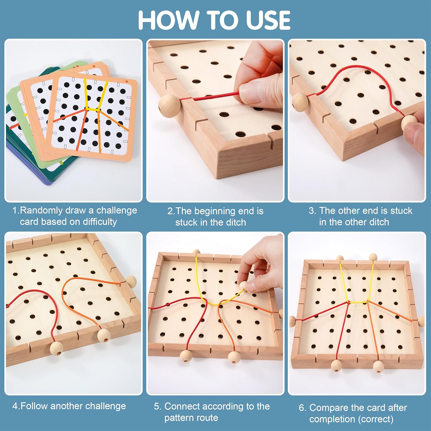 Offrez à votre enfant un géoplan Montessori en bois, robuste et sûr, pour développer sa motricité fine, sa créativité et ses compétences en mathématiques grâce à 40 motifs éducatifs stimulants.