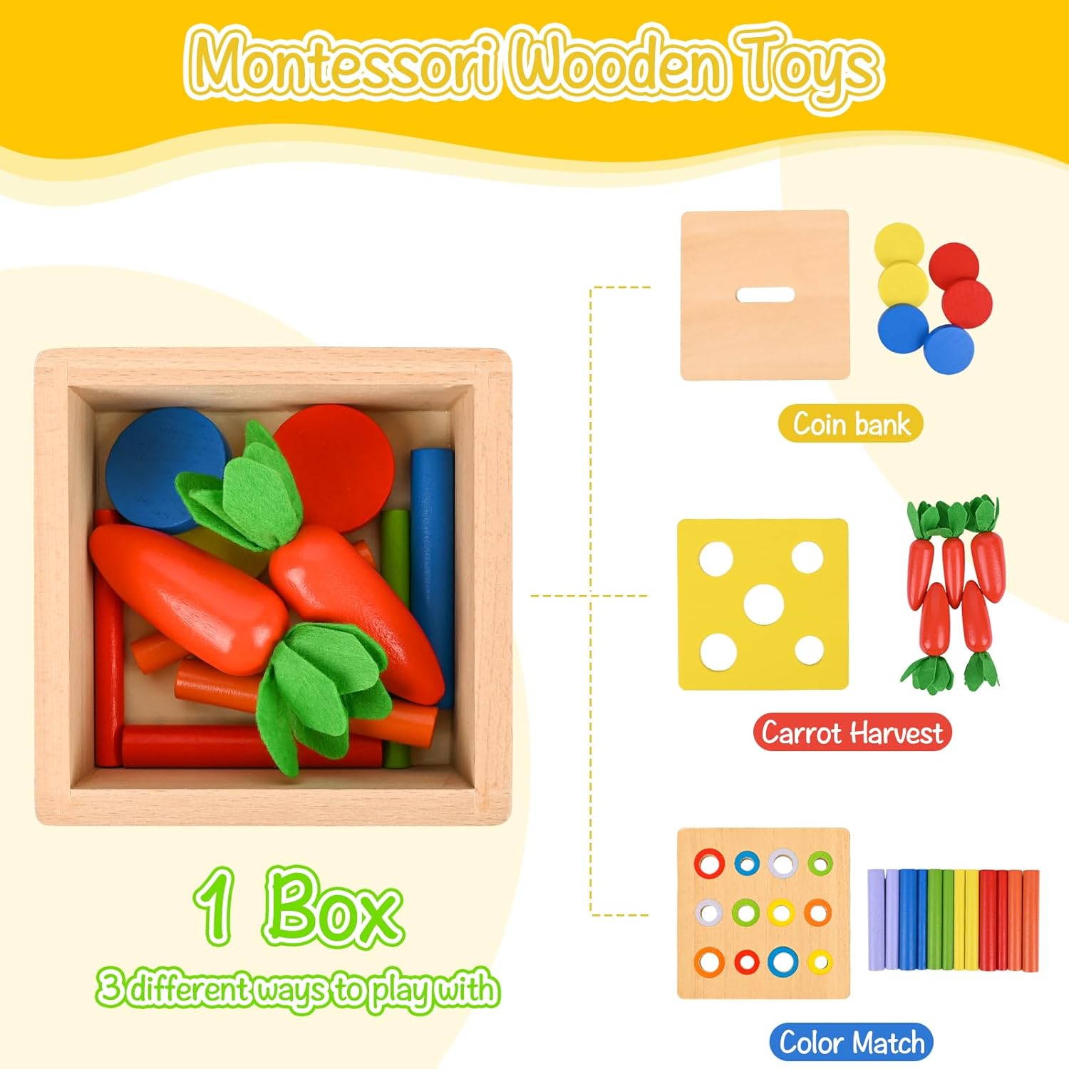 Jouet en bois Montessori 4 en 1 pour motricité et apprentissage