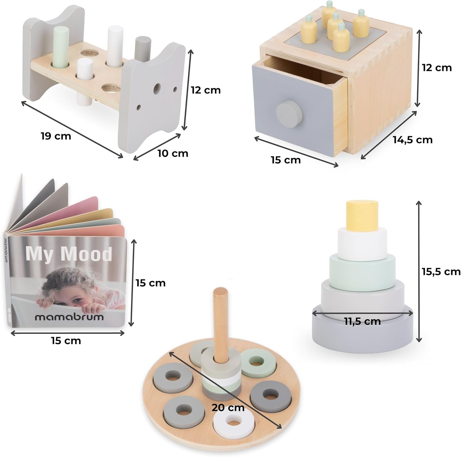 - Matière : Bois naturel, peintures non toxiques.