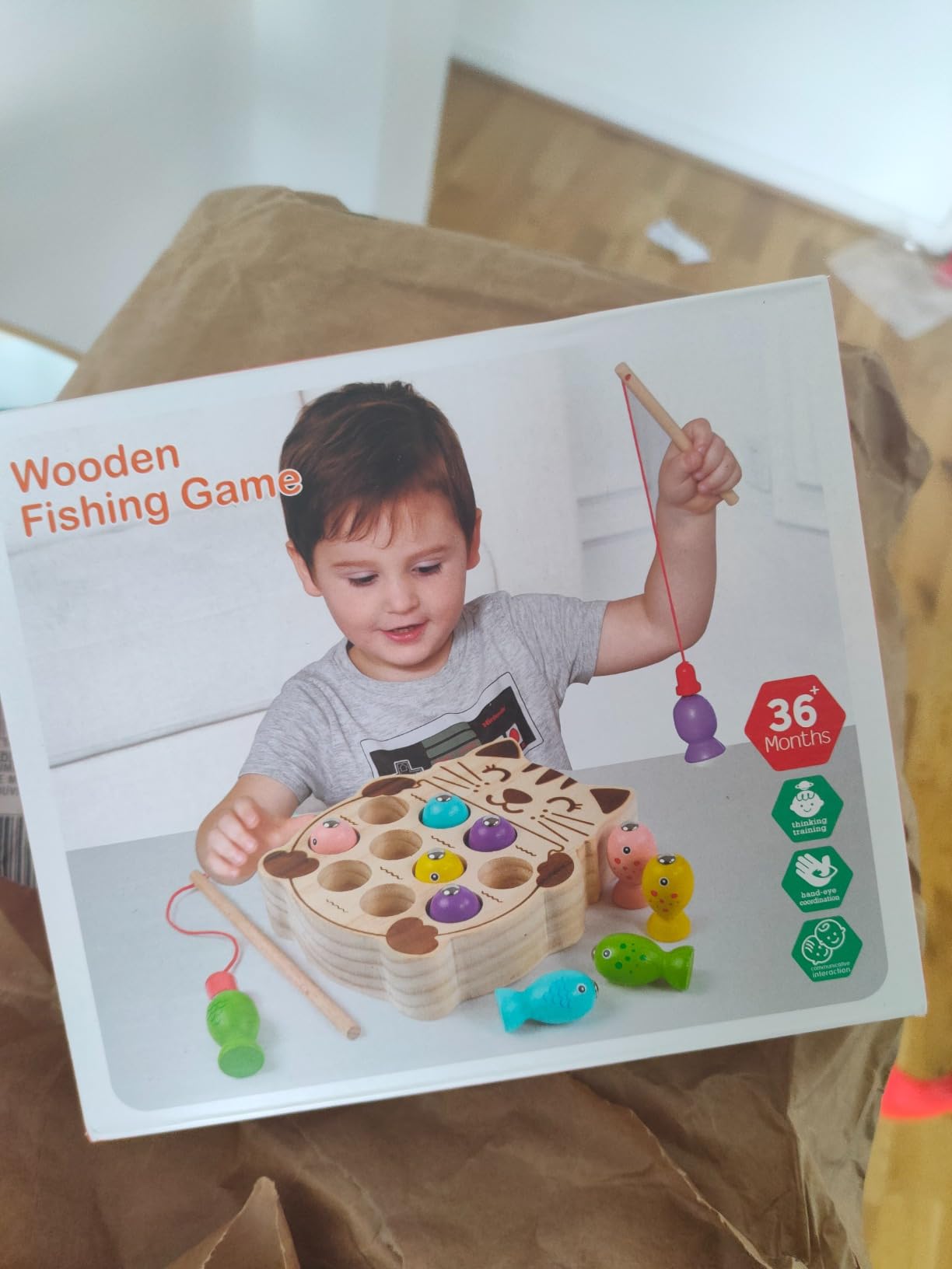 Mein Sohn ist erst 10 Monate alt und hat viel Spaß daran die Fische mit der Angel rauszuziehen. Toll verarbeitetes Holz. Optisch sehr süß.