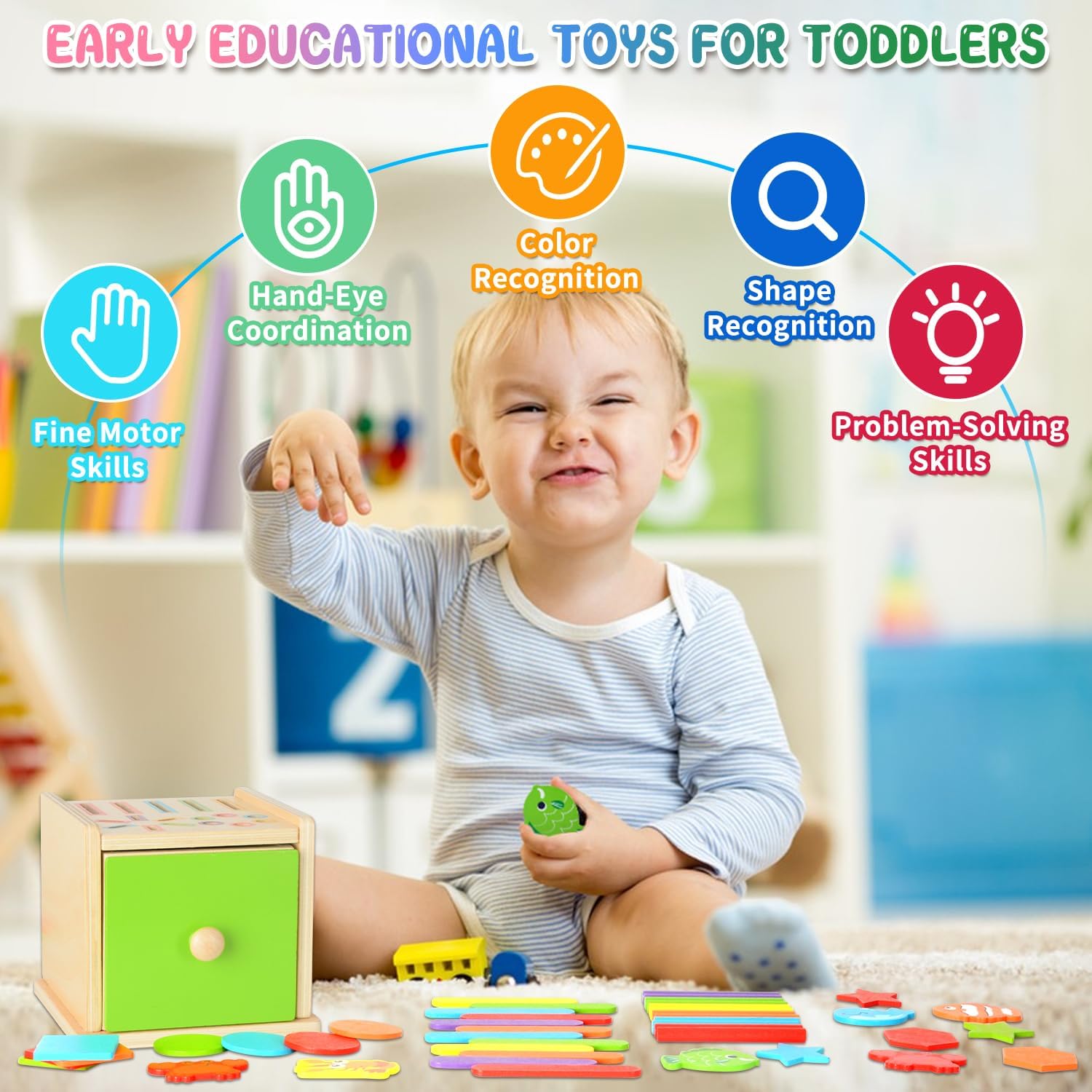 Stimulez la curiosité naturelle de votre bébé avec ce jouet montessori en bois, spécialement conçu pour les enfants dès 1 an. Grâce à ses multiples éléments colorés et ses formes variées, ce jeu éducatif aide votre enfant à développer ses compétences cognitives, sa motricité fine et son sens de la logique. Offrez-lui un moment d’apprentissage ludique tout en favorisant sa croissance intellectuelle et physique.