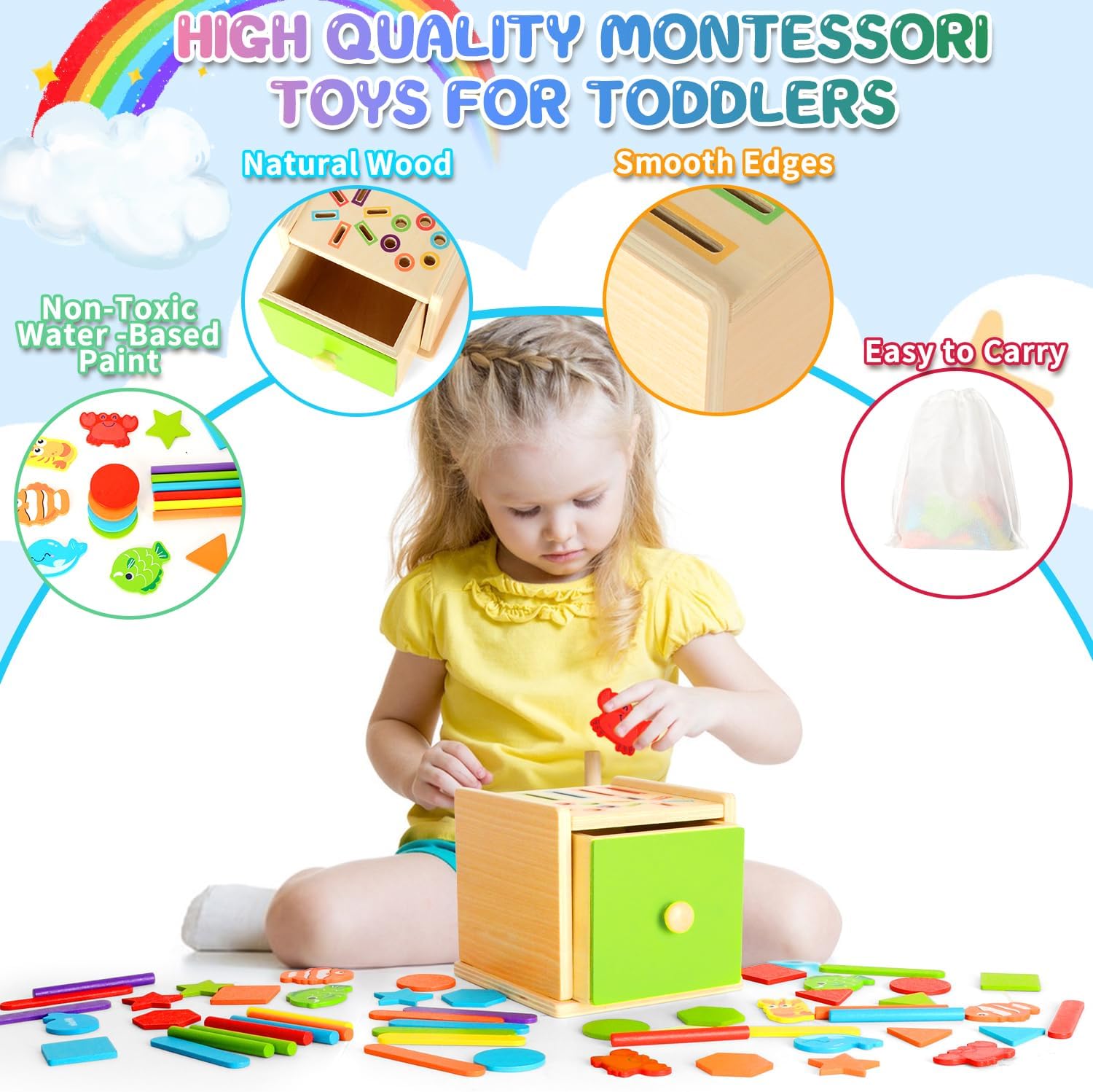 La sécurité de votre bébé est une priorité. Ce jouet montessori en bois est fabriqué à partir de matériaux robustes et durables, respectueux de l’environnement. Le bois utilisé est soigneusement poncé pour offrir une surface lisse et sans bavure, éliminant ainsi tout risque de blessure. De plus, les pigments appliqués sont non toxiques et inodores, garantissant une utilisation sans danger pour les tout-petits.