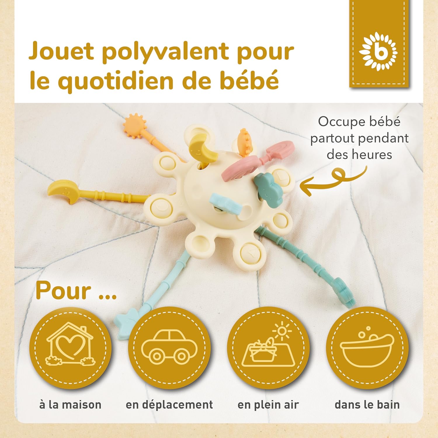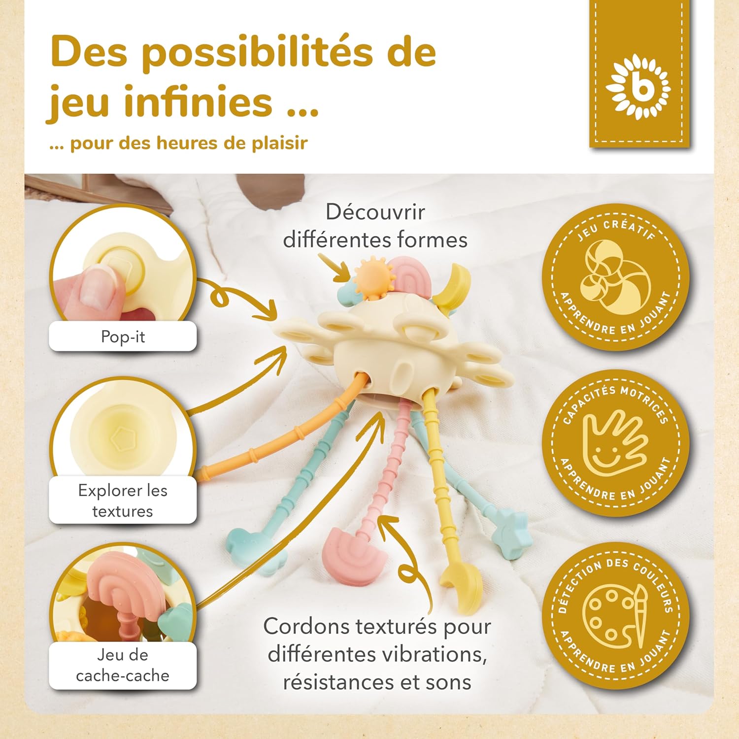 Très bon jouet sensoriel en silicone de Bieco ! Ma fille adore tirer sur les tentacules et découvrir les différentes textures. C’est doux, sûr et parfait pour éveiller ses sens et occuper ses petites mains. Facile à emporter partout, il est devenu son jouet préféré en sortie. Je recommande vivement !