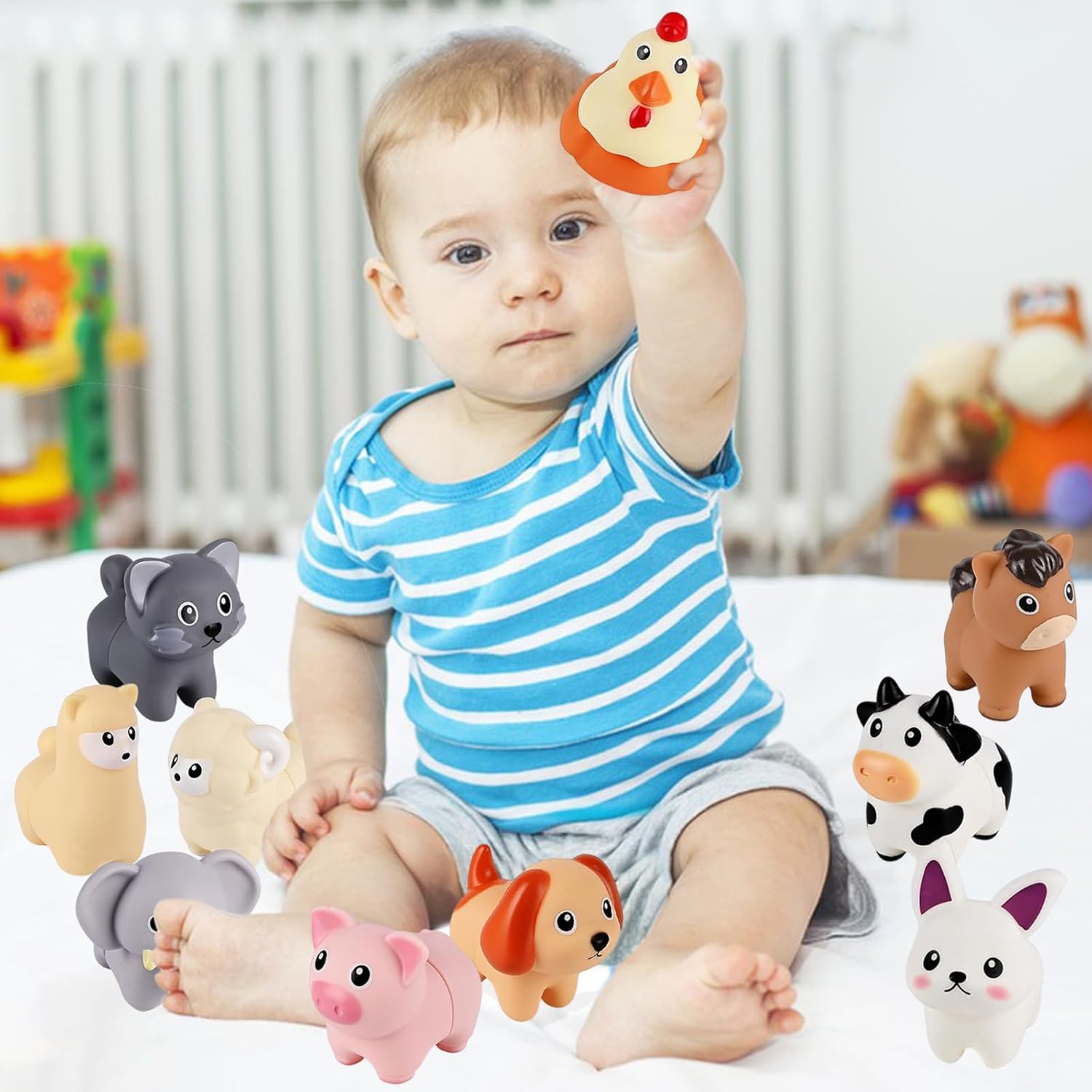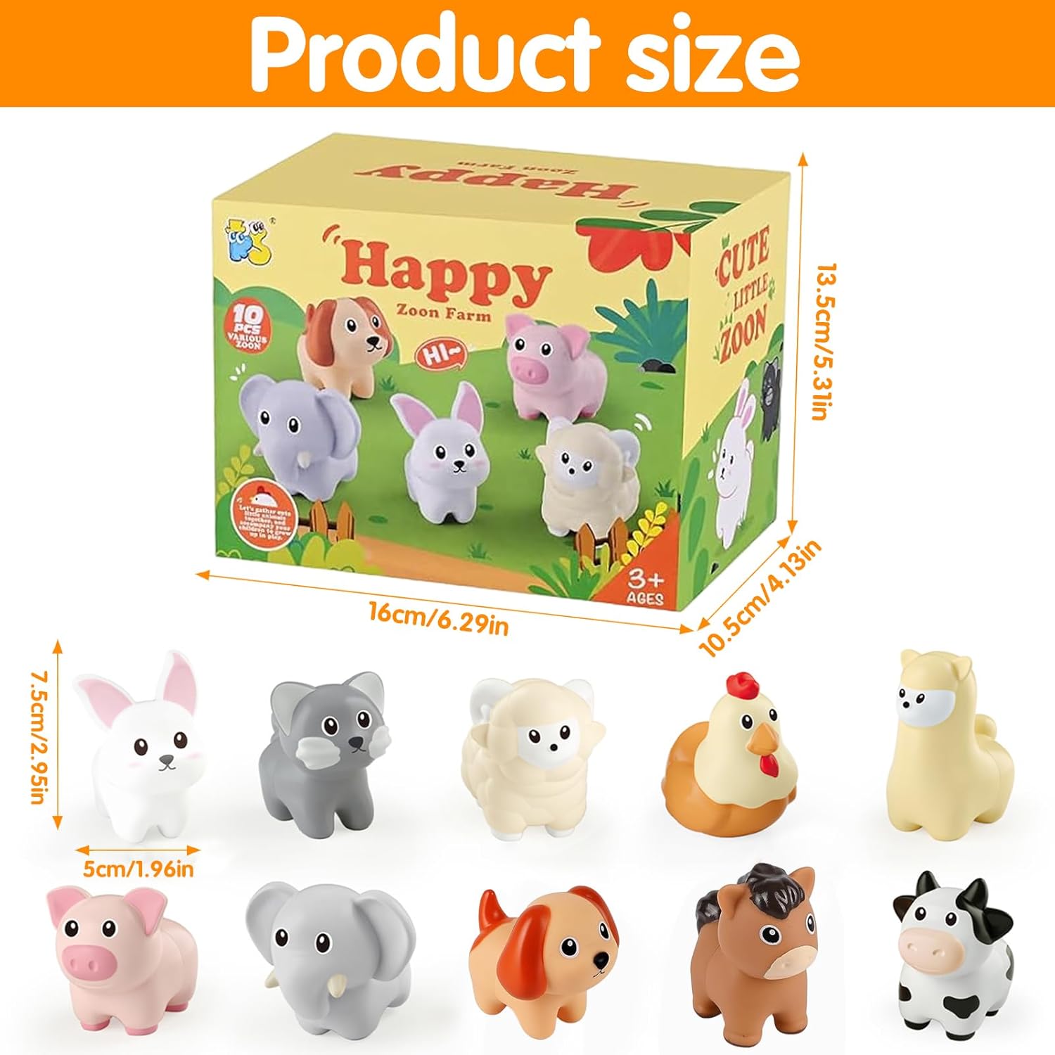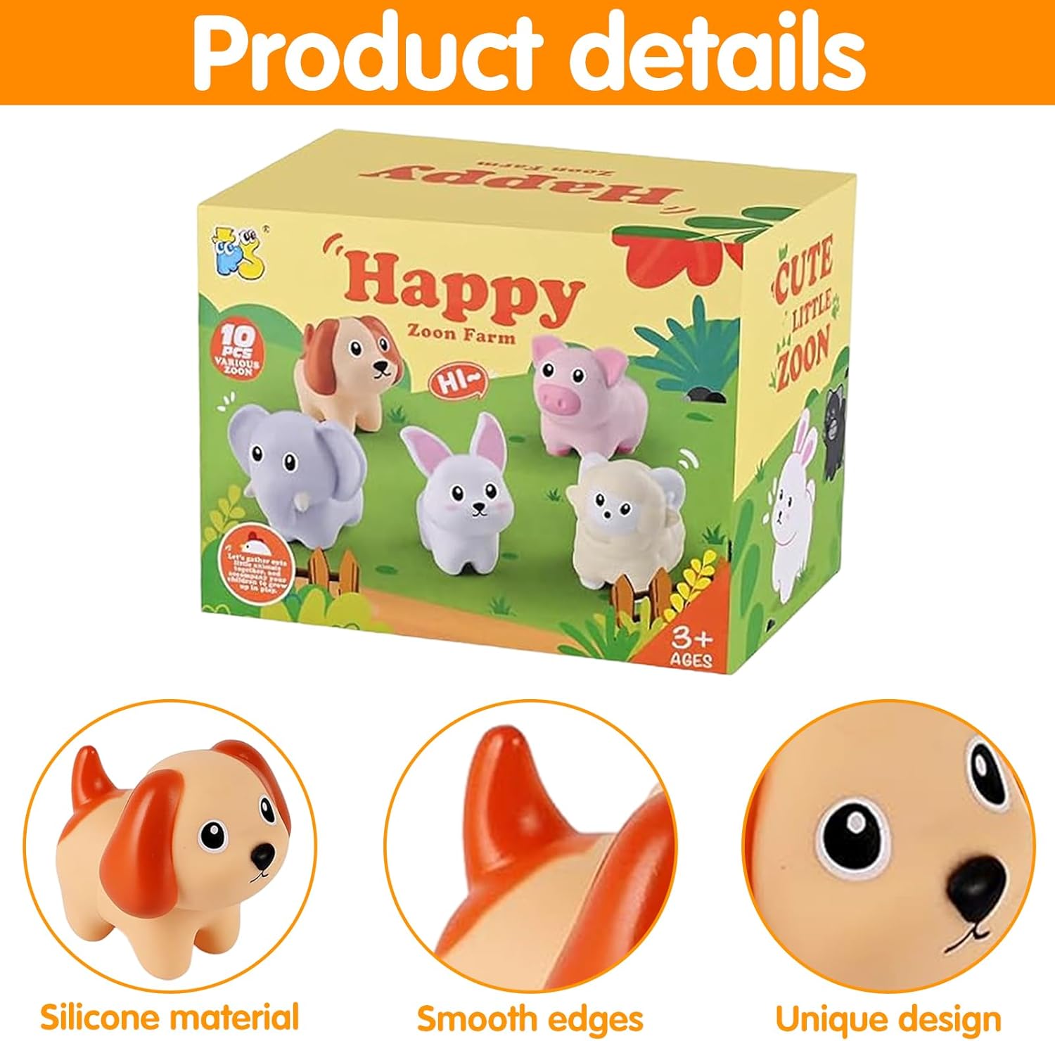 • Contenu du coffret : 10 animaux de la ferme en silicone.