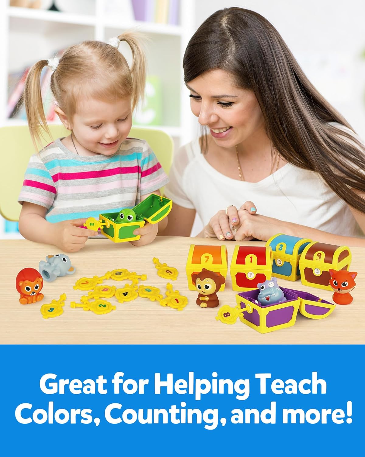 Offrez à vos enfants une expérience d’apprentissage ludique et interactive grâce à ce jeu de chasse au trésor Montessori. Avec ses 10 boîtes au trésor numérotées et ses clés assorties, ce jouet est conçu pour stimuler la motricité fine, encourager la reconnaissance des chiffres et favoriser le développement cognitif des tout-petits. Les enfants devront trouver la clé correspondante pour ouvrir chaque boîte, révélant ainsi une surprise cachée : une adorable marionnette à doigts en forme d’animal.