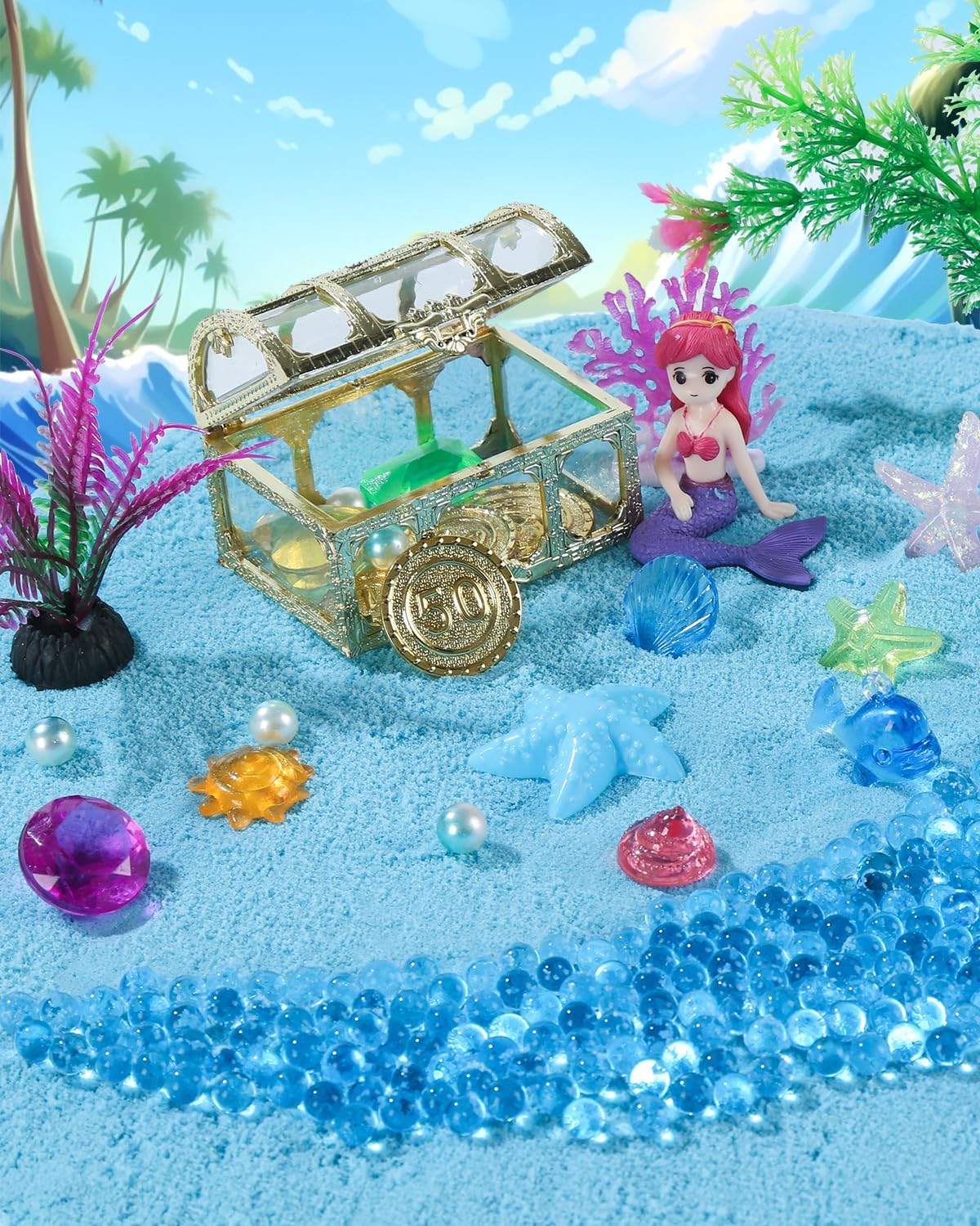 Le sable sensoriel est bien plus qu’un simple jouet : c’est un outil pédagogique qui favorise le développement des capacités motrices fines, la coordination œil-main et l’expression créative. En manipulant le sable et les accessoires, les enfants exercent leur motricité tout en explorant différentes textures. Ce jeu immersif encourage également l’imagination et le langage, notamment lorsqu’ils inventent des histoires autour du thème marin.