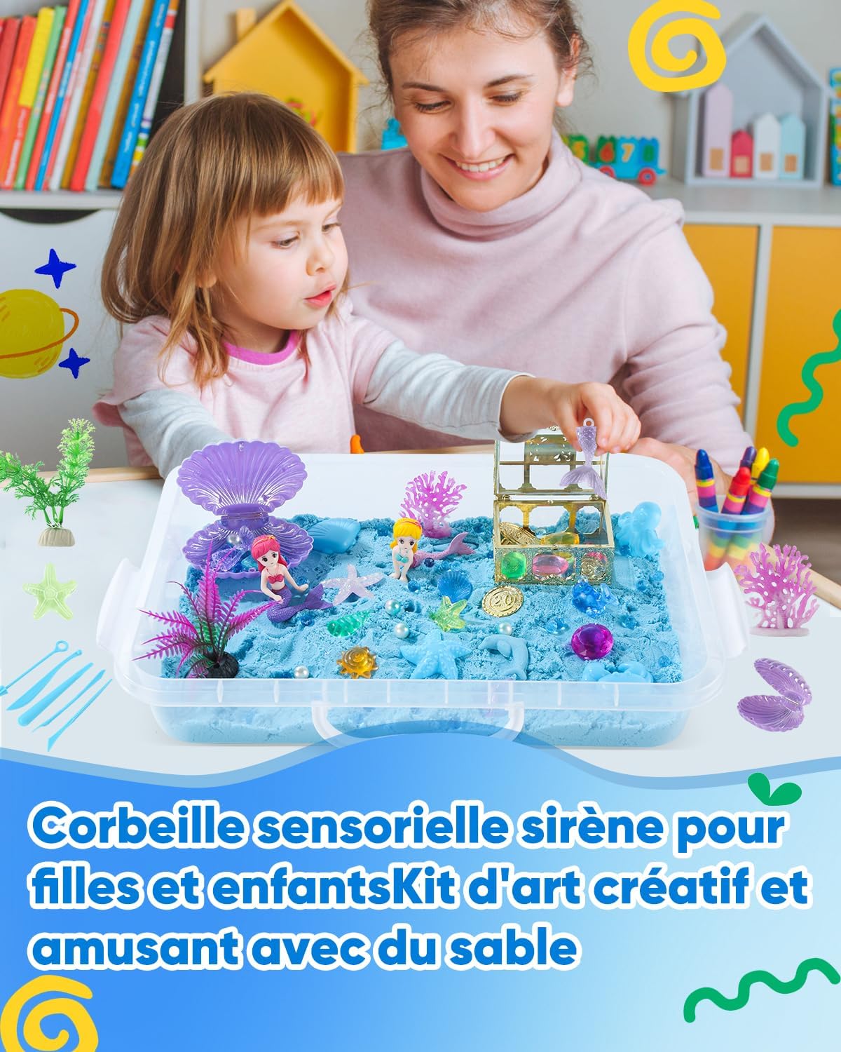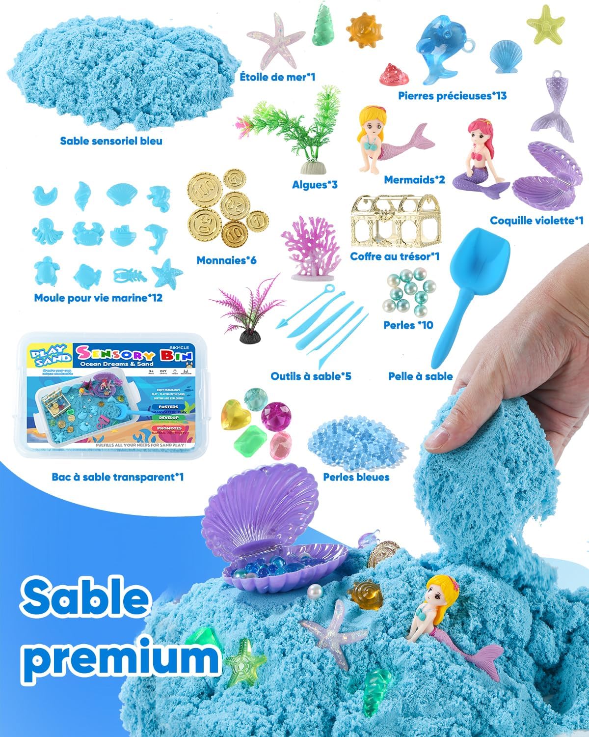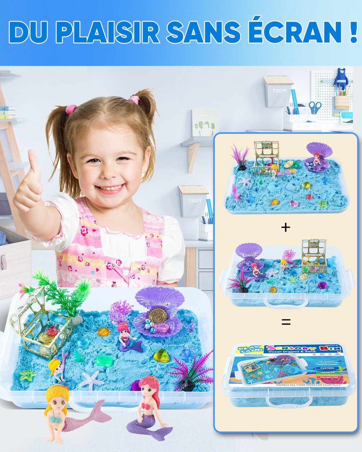 Plongez dans l’imaginaire avec ce kit de sable sensoriel bleu, complet avec des accessoires éducatifs pour un jeu créatif et des heures de divertissement tactile.