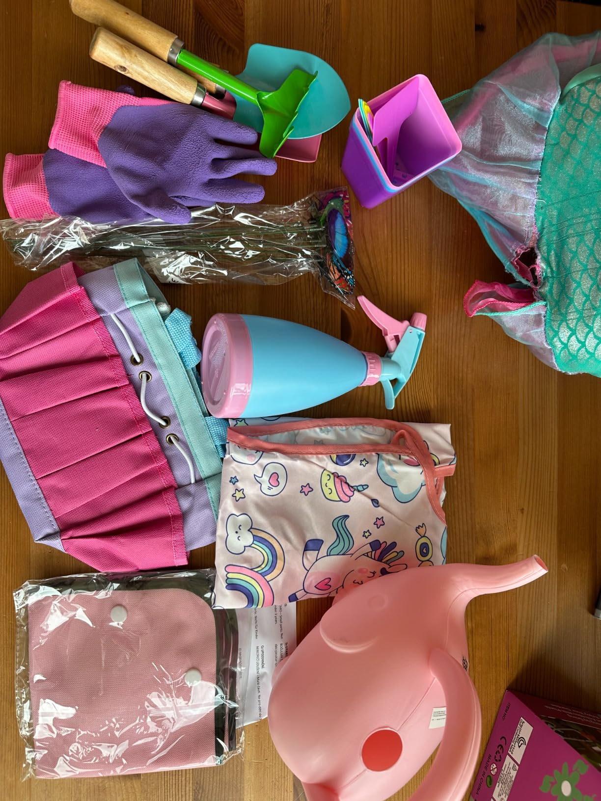 My little girl always wanted to do gardening with me and she was super excited when receiving this gardening tool set. The items are well-made and very attractive to children. The apron fits her perfectly but the gloves are still a little too big for a 3-year-old. She loves the gardening tools as well as the butterfly decorations so much and has been using them almost every day. I would highly recommend this gardening tool set as a perfect gift for little children.