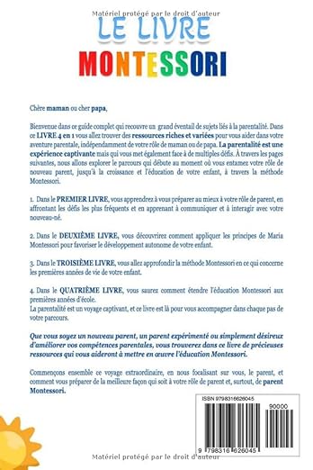 Que vous soyez un parent débutant, déjà expérimenté ou simplement curieux d’en apprendre davantage sur les bienfaits de la méthode Montessori, ce guide s’adresse à vous. Vous y trouverez des solutions adaptées à vos besoins spécifiques et à ceux de votre enfant. Ce livre est également parfait pour les grands-parents, éducateurs ou toute personne souhaitant jouer un rôle actif dans le développement d’un enfant.