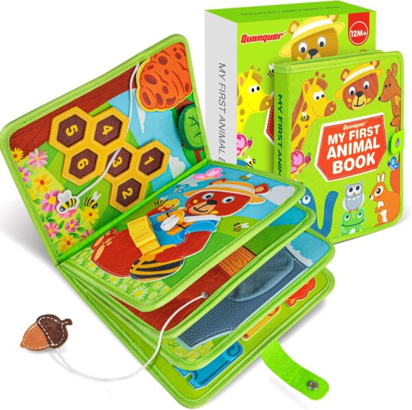J’ai pris ce busy board pour mon fils et il l’adore. Les animaux en 3D et les différentes textures attirent tout de suite son attention. Il y a plein d’activités variées (fermeture éclair, puzzle, tri des formes, pages froissées…) qui l’occupent longtemps et l’aident à développer sa motricité. Le livre est solide, bien cousu et assez grand pour que les pièces ne se perdent pas facilement. En voyage ou même à la maison, c’est super pratique pour l’occuper sans écran. En plus, il est lavable et livré dans une belle boîte, parfait aussi comme cadeau. Franchement, un excellent jouet éducatif !