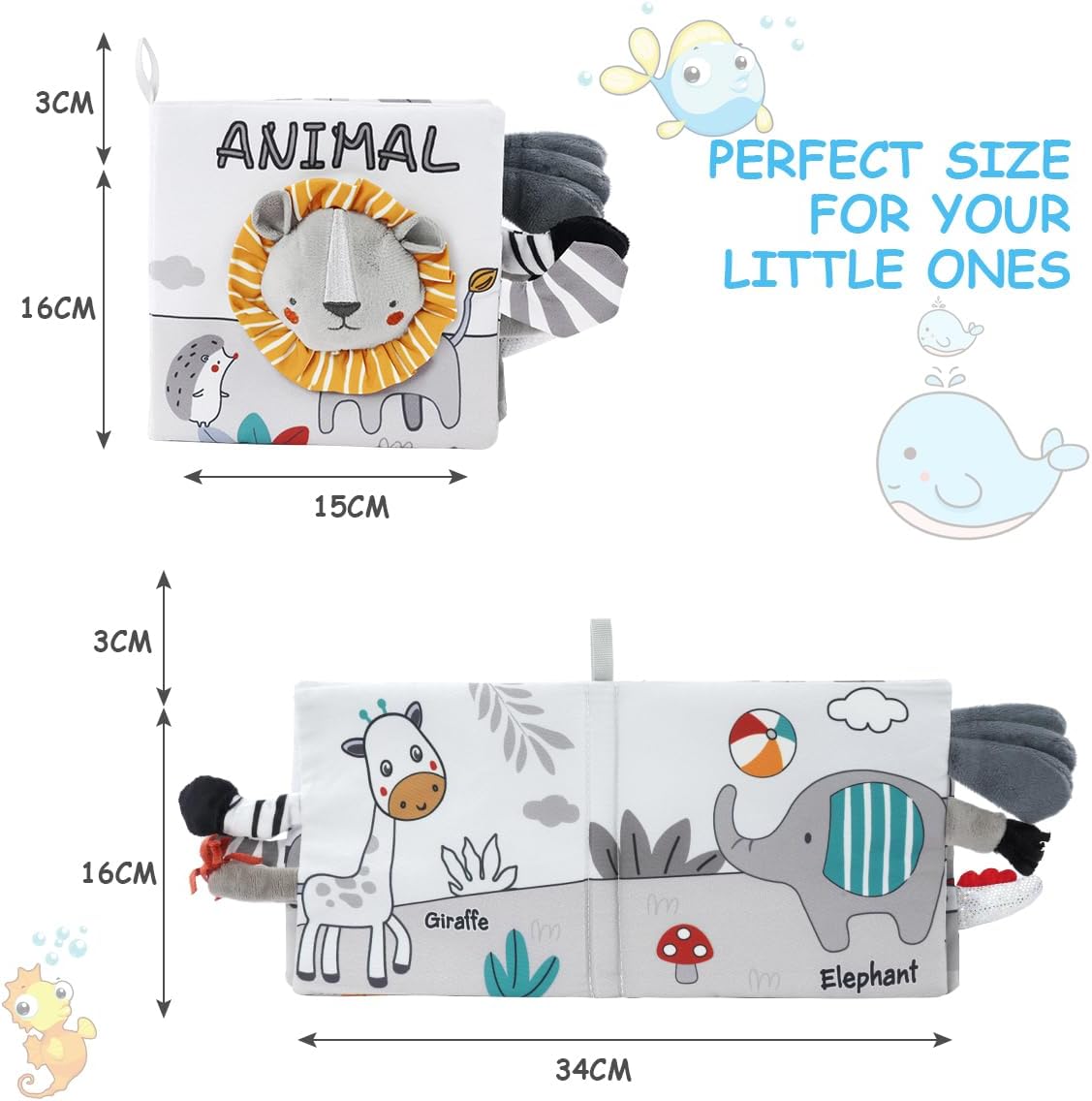 Que ce soit pour une baby shower, un anniversaire ou un cadeau de Noël, ce livre d’éveil en tissu est le choix parfait pour émerveiller les tout-petits. Adapté dès la naissance jusqu’à 2 ans, il convient aussi bien aux garçons qu’aux filles. Polyvalent, il peut même servir d’élément décoratif lorsqu’il est suspendu au mur de la chambre de bébé.