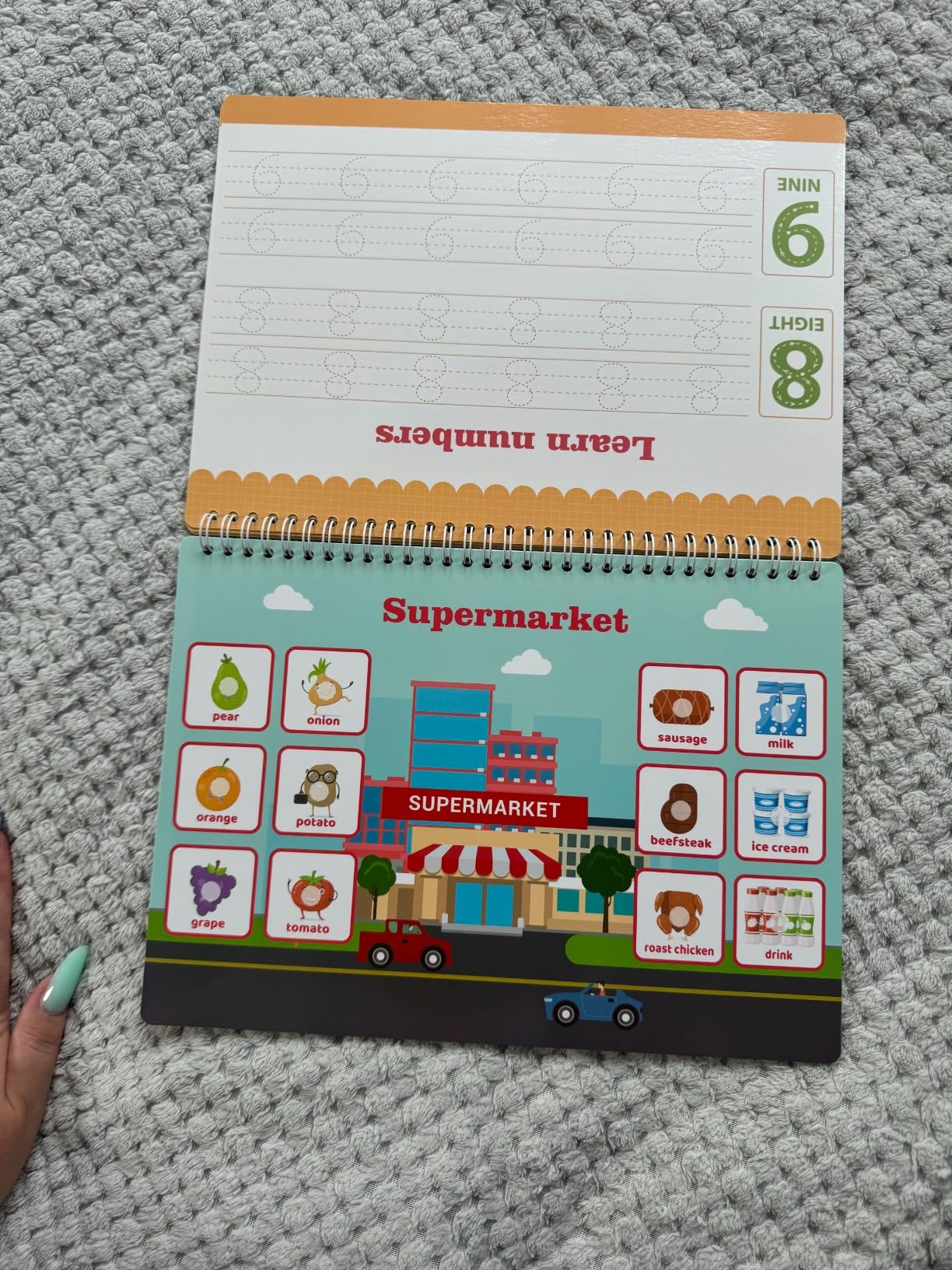 Même si c'est en anglais je le recommande à tout le monde et à toutes les langues. Livre style montessori avec plusieurs thèmes de cartes à scratchs et l'autre face à colorier les dessins grâce aux feutres ardoises qui sont fournis. Vraiment j'adore. Bon rapport qualité prix