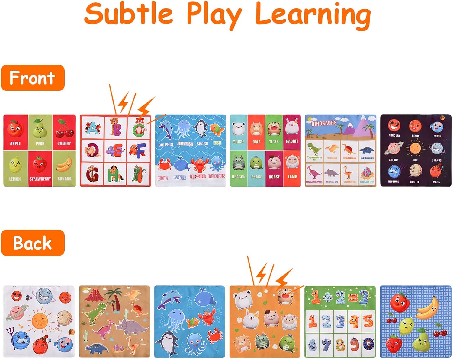 Ce livre sensoriel propose six thèmes captivants, tels que les animaux, les fruits et bien plus encore. Chaque page est conçue pour éveiller les sens de votre bébé : des textures variées à toucher, des motifs colorés à observer, et même des éléments sonores intégrés pour développer son ouïe. Les foulards en soie inclus stimulent la vision grâce à leurs teintes éclatantes et invitent votre enfant à découvrir le plaisir du mouvement et du toucher.