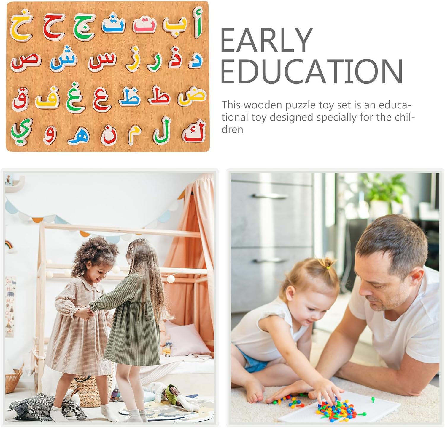 En combinant jeu, apprentissage et sécurité, ce livre de puzzles alphabet arabe Montessori est le compagnon parfait pour éveiller l’intérêt des enfants envers la langue arabe. Faites le choix d’un jouet intelligent qui allie plaisir et éducation !
