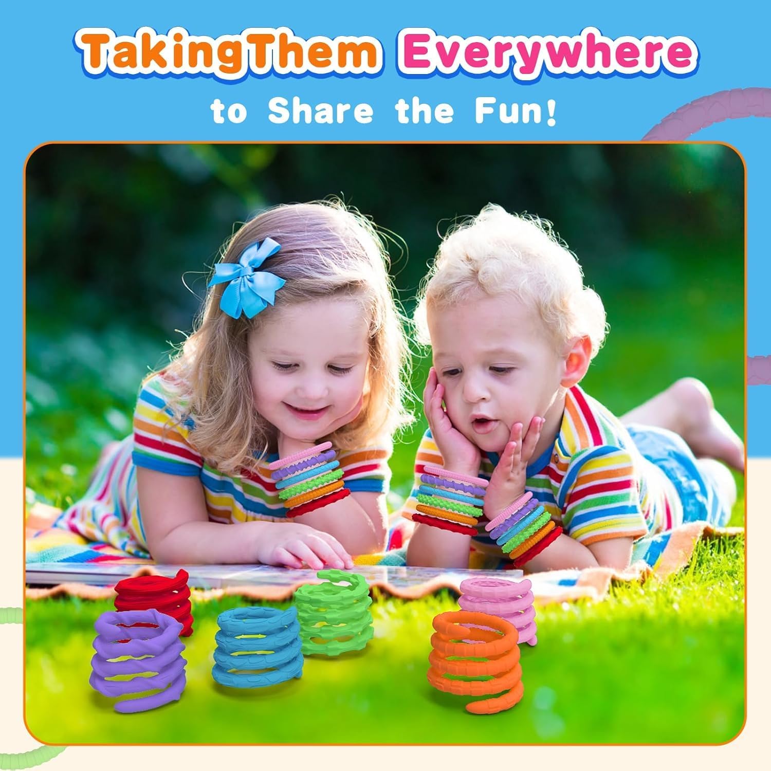 Fabriqués pour durer, ces jouets sensorielles sont conçus avec des matériaux résistants qui leur permettent de conserver leur forme, même après de multiples torsions et flexions. Leur texture unique offre une prise agréable et sécurisée, tandis que leurs couleurs vives captivent l’attention. De plus, leur entretien est un jeu d’enfant : un simple passage sous l’eau ou un nettoyage avec un chiffon humide suffit pour les maintenir impeccables, même après une utilisation prolongée.