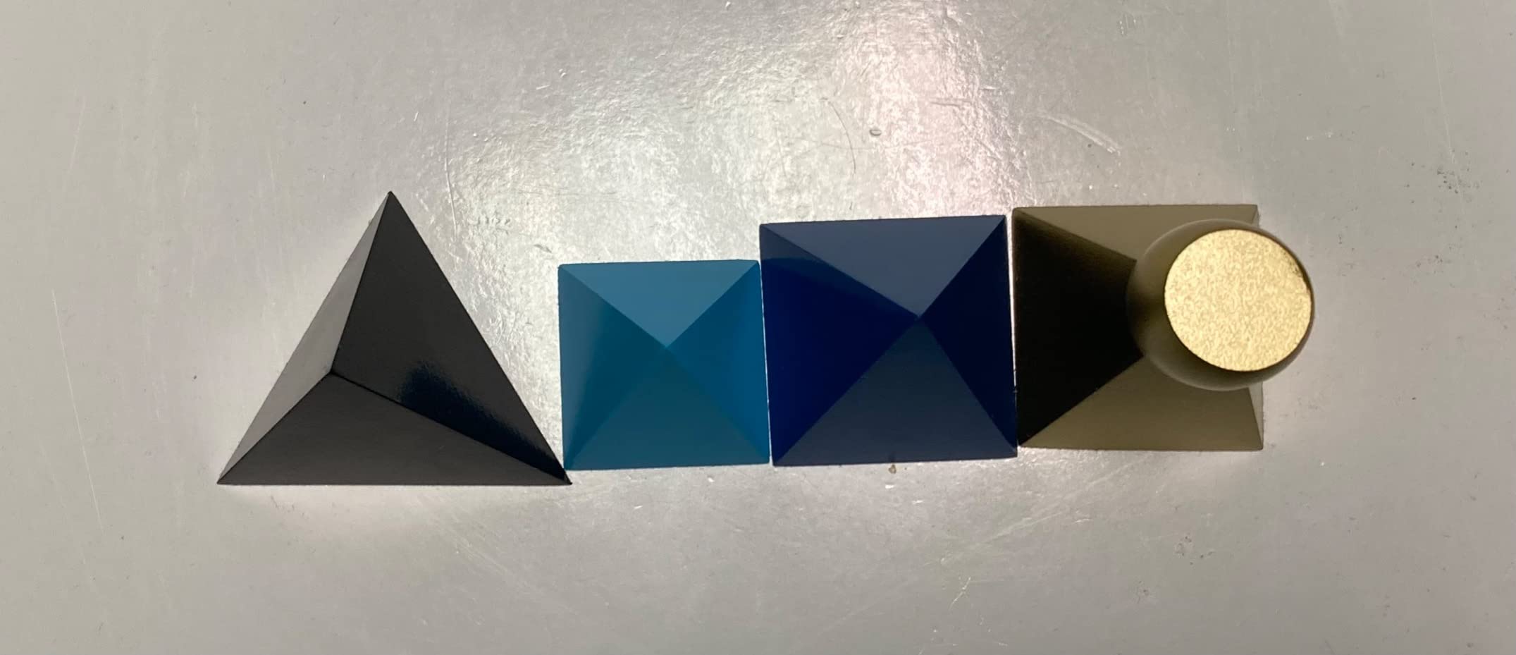 Dommage que le solide représentant le NOM soit une pyramide de base à 3 côtés et non 4 côtés comme les pyramides du DÉTERMINANT et de l’ADJECTIF. De même le solide représentant l’INTERJECTION a une pyramide de base 4 côtés alors que d’autres modèles du commerce font une petite base rectangulaire pour ce solide - ce qui est plus logique. Je débute en matériel Montessori et constate que les boîtes du commerce ne sont malheureusement pas standards, cf photo de deux symboles de NOM provenant de deux marques différentes, leur taille et forme ne sont pas compatibles entre eux pour les utiliser ensemble. Dommage.
