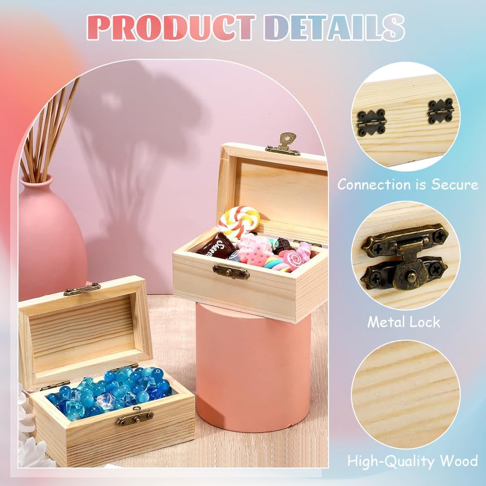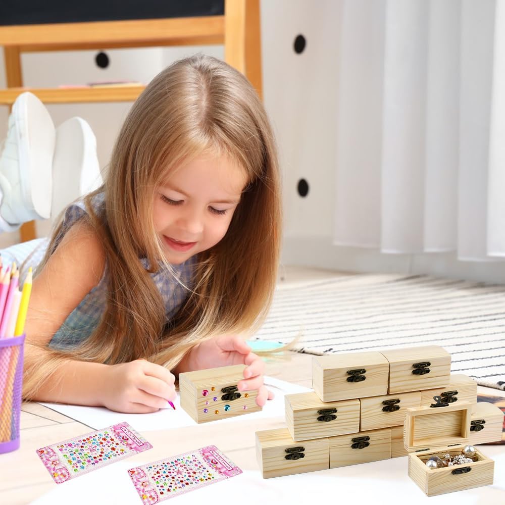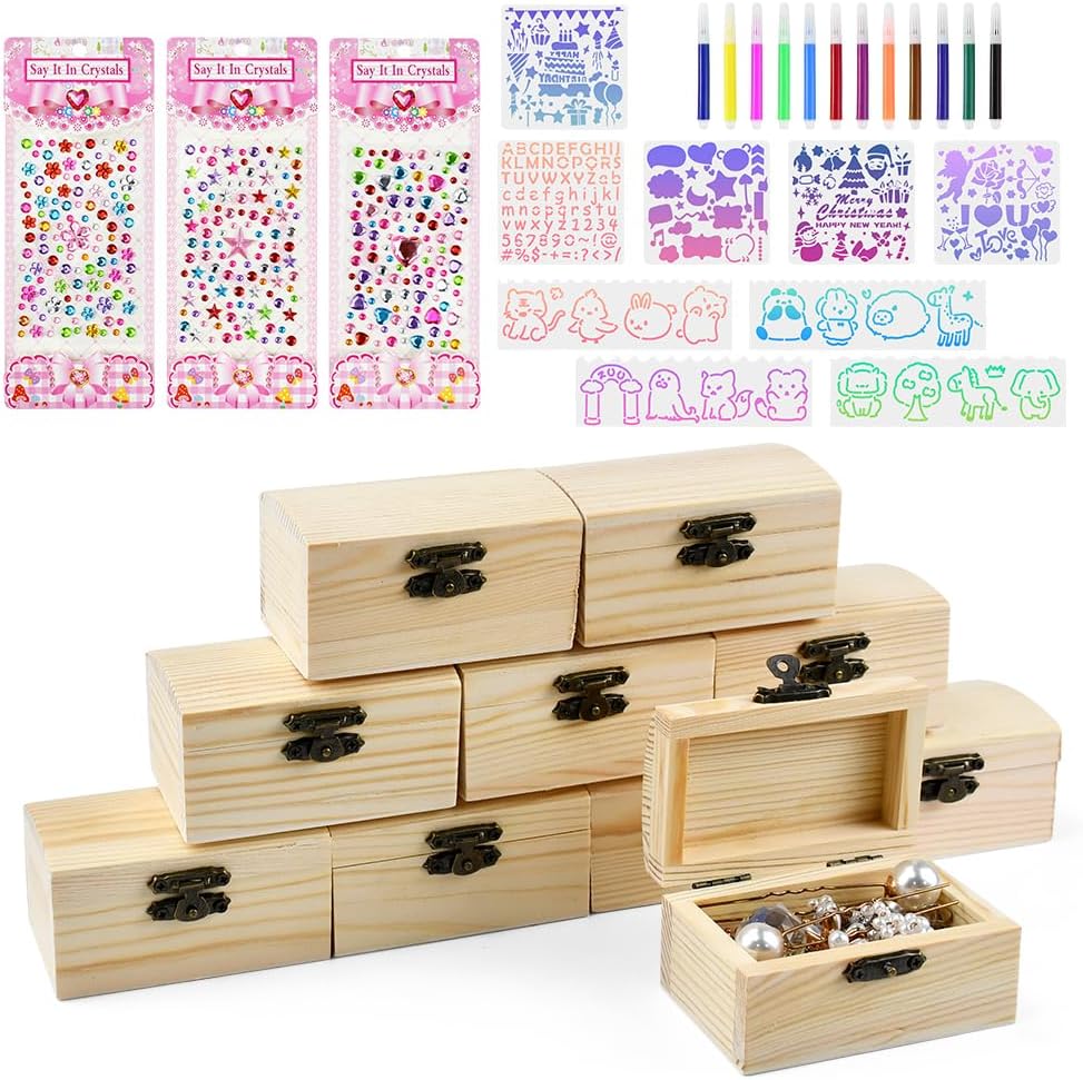 Découvrez ce lot de 10 mini coffres au trésor en bois naturel à personnaliser, parfaits pour stimuler la créativité et ajouter une touche d’élégance à votre décoration ou rangement.