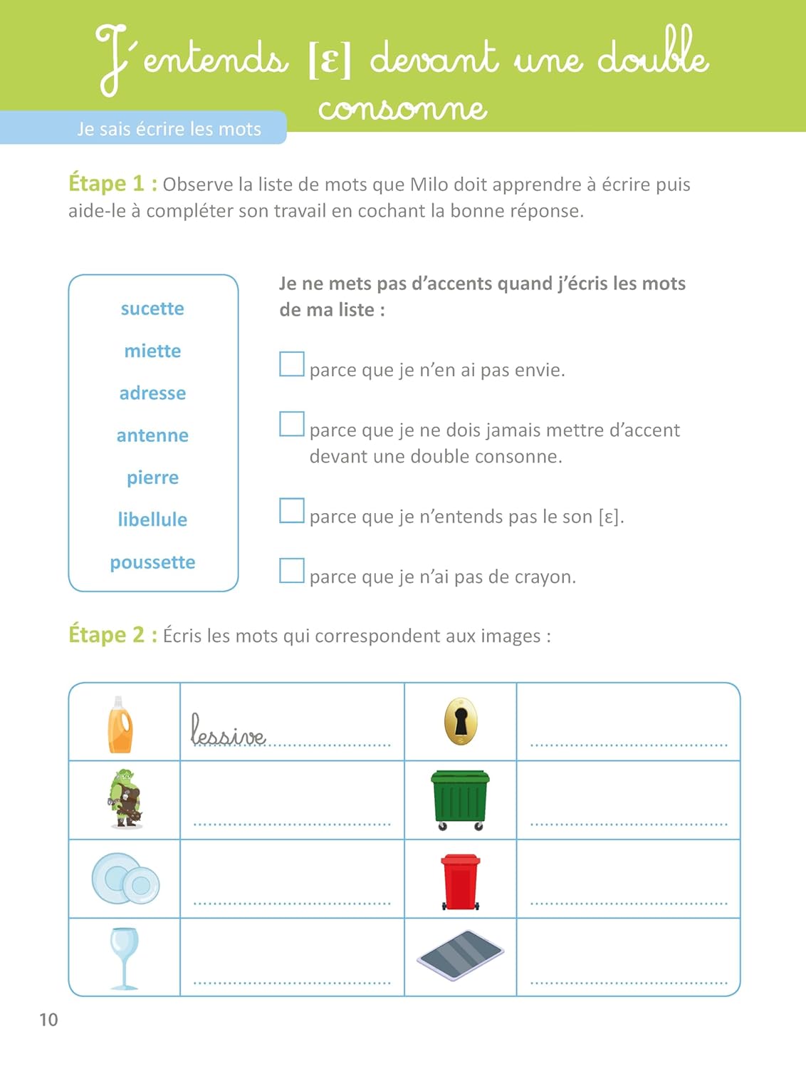Ces activités permettent de maîtriser des concepts essentiels comme les lettres muettes, le passage du singulier au pluriel, la distinction entre masculin et féminin, ou encore la gestion des mots invariables. Chaque page est pensée pour captiver et motiver les jeunes esprits, tout en favorisant une approche progressive et structurée.