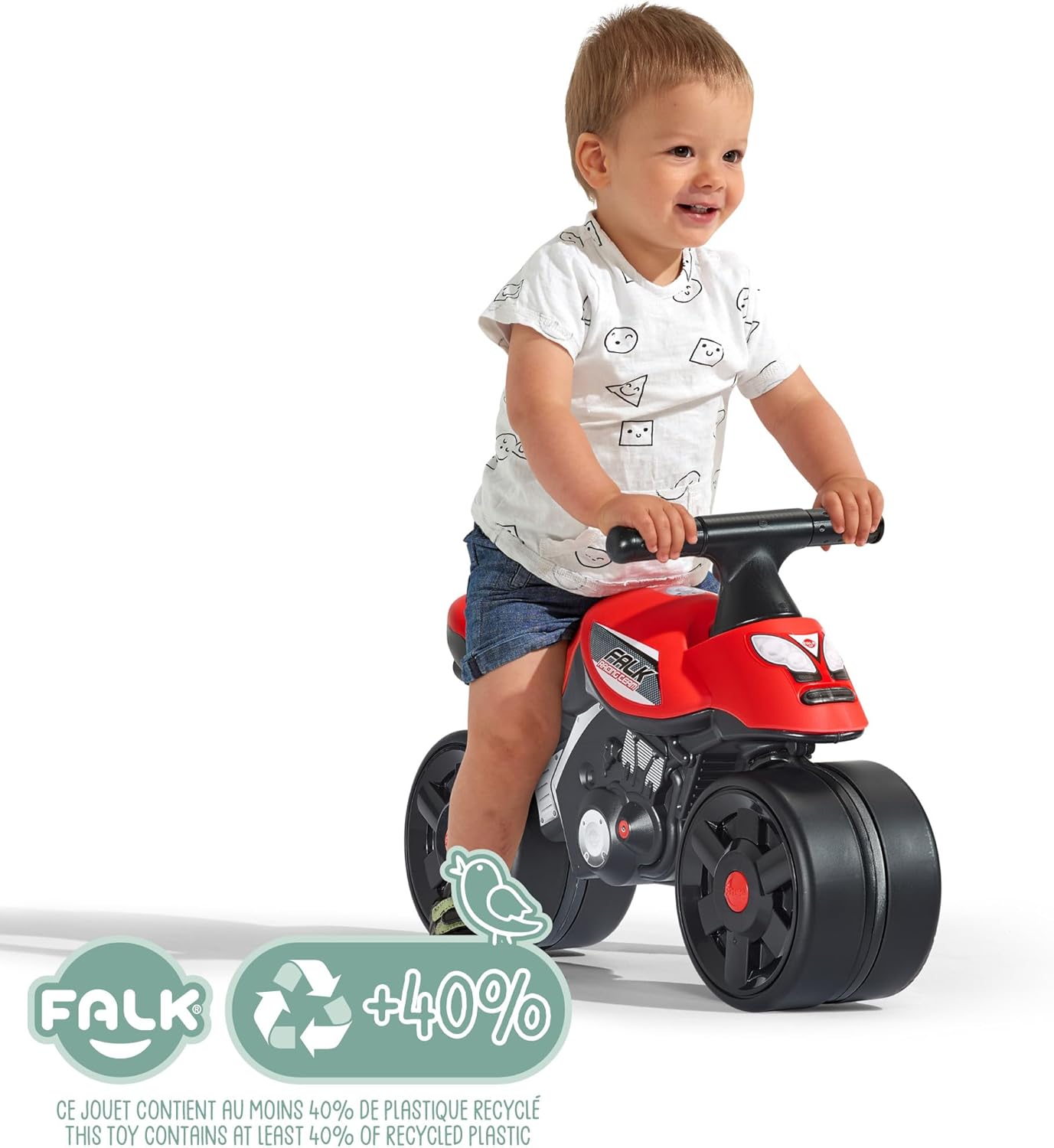 Une super moto porteur avec un look qui fait rêver tous les enfants ! Mon fils en est fou et quand il va au jardin avec tous les autres enfants veulent l’essayer ! Des autocollants à tomber, elle roule super bien et est très stable ! Française de surcroît, pour un prix franchement très modeste, que demander de mieux ?