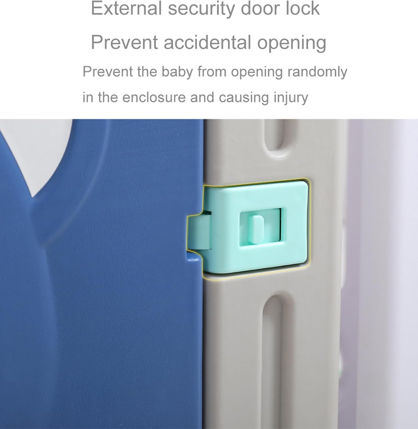 Fabriqué avec des matériaux respectueux de l’environnement, ce parc bébé se distingue par sa robustesse et sa fiabilité. Chaque panneau de clôture, d’une épaisseur de 3 cm, garantit une stabilité inégalée, tandis que la hauteur de 64 cm empêche efficacement les chutes accidentelles. Pour une sécurité accrue, une serrure de porte extérieure a été ajoutée, permettant aux parents de se sentir en totale confiance lorsque leur enfant joue dans le parc.