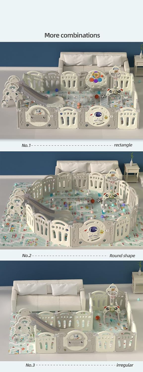 Son tapis anti-collision inclus est non seulement doux et confortable, mais également facile à nettoyer. Que ce soit pour un nettoyage quotidien ou une reconfiguration de l’espace, ce parc garantit un entretien rapide et sans effort.
