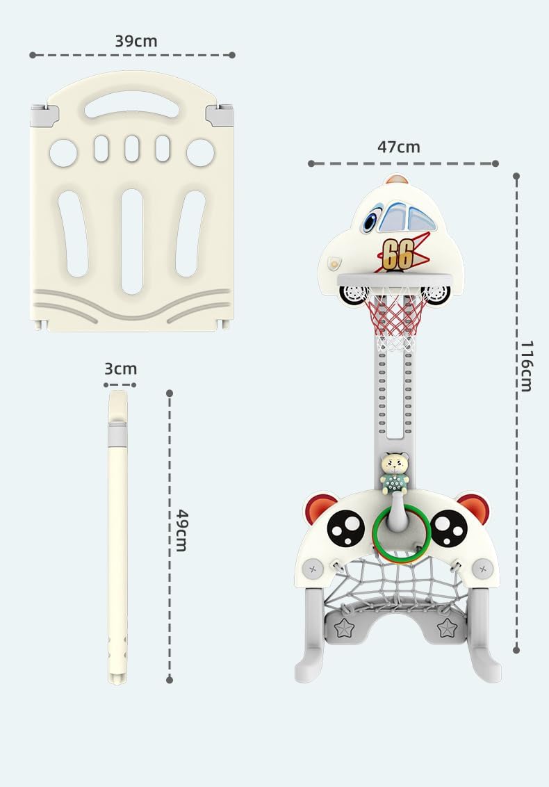 Lors du montage du parc je me suis rendu compte qu'il manquait le filet du panier de "basket". J'ai également constaté l'absence de deux grosses vis et une autre pour le jouet en forme de corne.