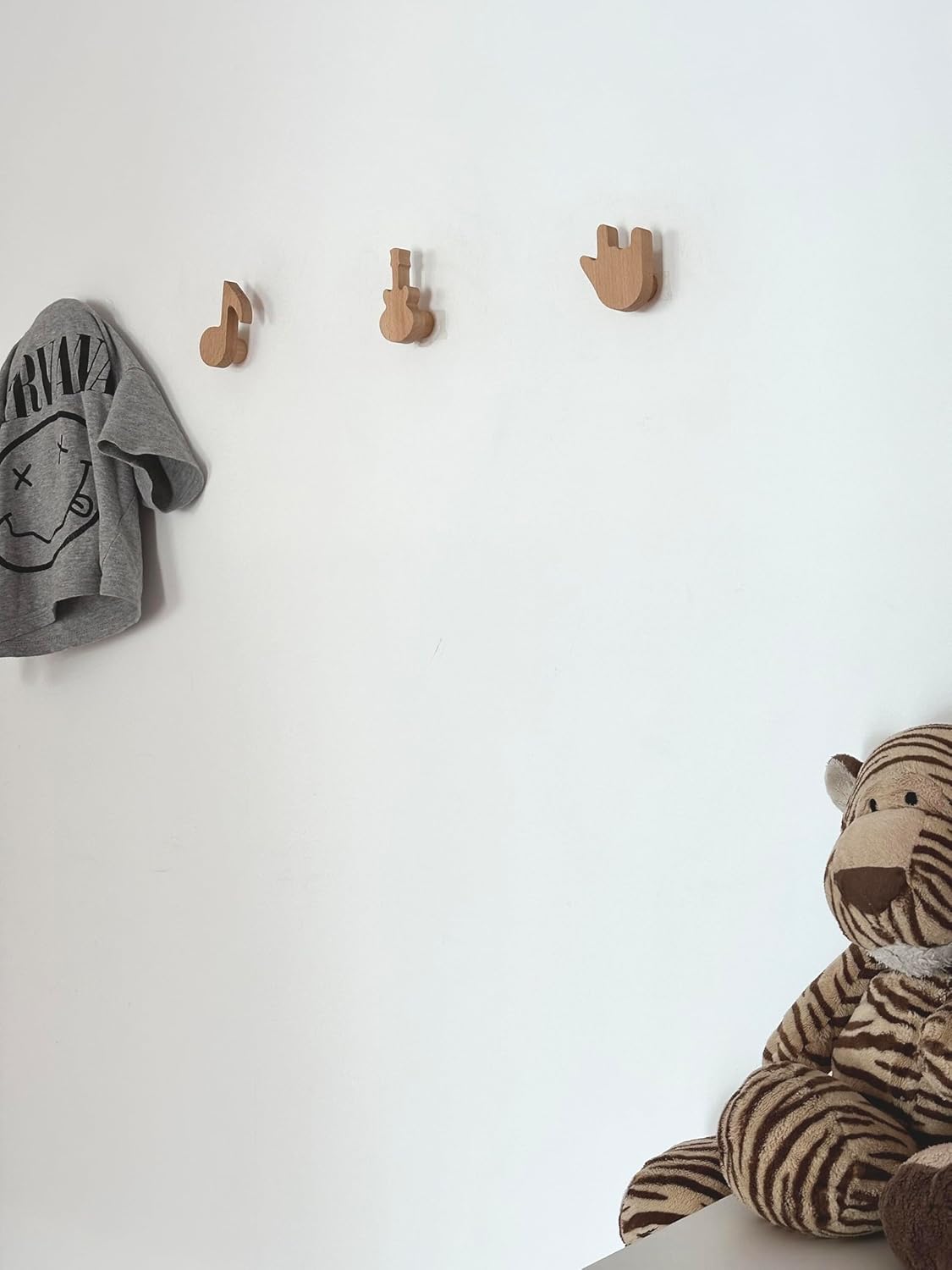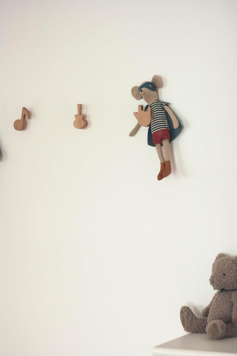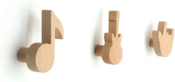 Ajoutez une touche ludique et pratique à la chambre de votre enfant avec ces patères murales en bois de hêtre massif, au design musical et aux bords arrondis pour une sécurité optimale.