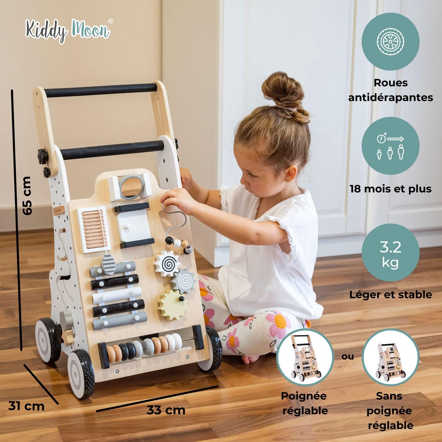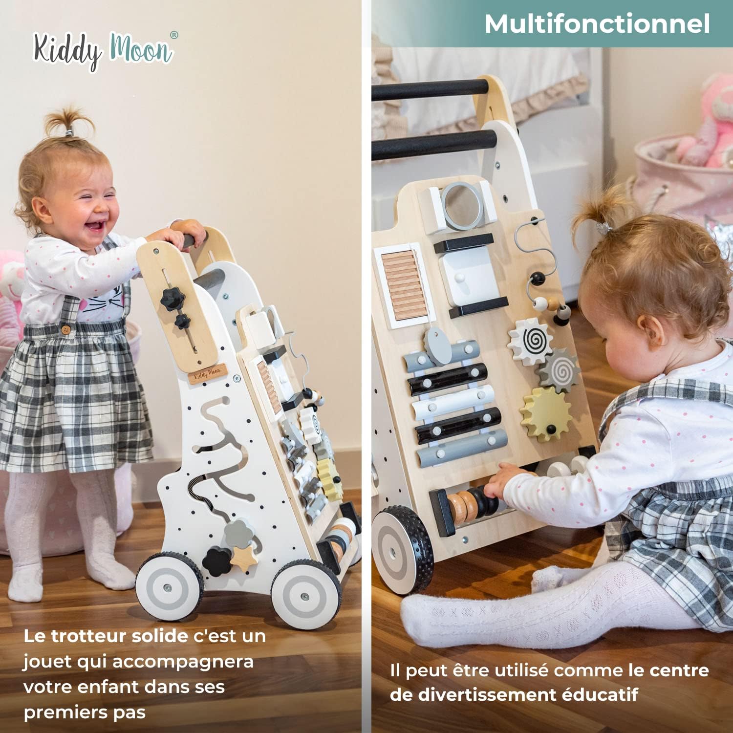 J'ai récemment acheté un trotteur pour mon enfant, équipé d'un tableau d'activité, et je suis absolument enchanté par ses fonctionnalités et son impact sur le développement de mon enfant. Ce trotteur ludique et stimulant est un compagnon idéal pour les premiers pas de mon enfant. Tout d'abord, le tableau d'activité intégré est une véritable mine d'or pour l'apprentissage et l'amusement. Il offre une variété d'activités interactives telles que des boutons lumineux, des formes à encastrer, des mélodies et des bruits amusants. Mon enfant est captivé par ces fonctionnalités et passe des heures à explorer les différentes activités proposées. Cela stimule sa curiosité, sa motricité fine et sa coordination tout en l'amusant. Le trotteur lui-même est extrêmement pratique et sécurisé. Il est conçu de manière ergonomique pour soutenir le développement moteur de mon enfant lorsqu'il apprend à marcher. Les roues offrent une bonne stabilité et les poignées sont faciles à saisir, ce qui donne à mon enfant une confiance supplémentaire dans ses premiers pas. De plus, le trotteur est doté d'un système de freinage qui permet de ralentir ou d'arrêter facilement le trotteur, offrant ainsi une sécurité supplémentaire. Un autre avantage important de ce trotteur est sa polyvalence. Non seulement il aide mon enfant à développer sa motricité, mais il peut également être utilisé comme une aire de jeu indépendante. Le tableau d'activité peut être détaché et posé sur le sol, ce qui permet à mon enfant de s'amuser avec les activités même lorsqu'il ne se déplace pas. Cela en fait un compagnon de jeu polyvalent qui peut divertir mon enfant à différents stades de son développement. Enfin, la qualité de construction du trotteur est excellente. Les matériaux utilisés sont durables et résistants, ce qui garantit une longue durée de vie du produit. Même après des utilisations répétées et parfois énergiques, le trotteur conserve son état d'origine, ce qui en fait un excellent investissement pour les parents.